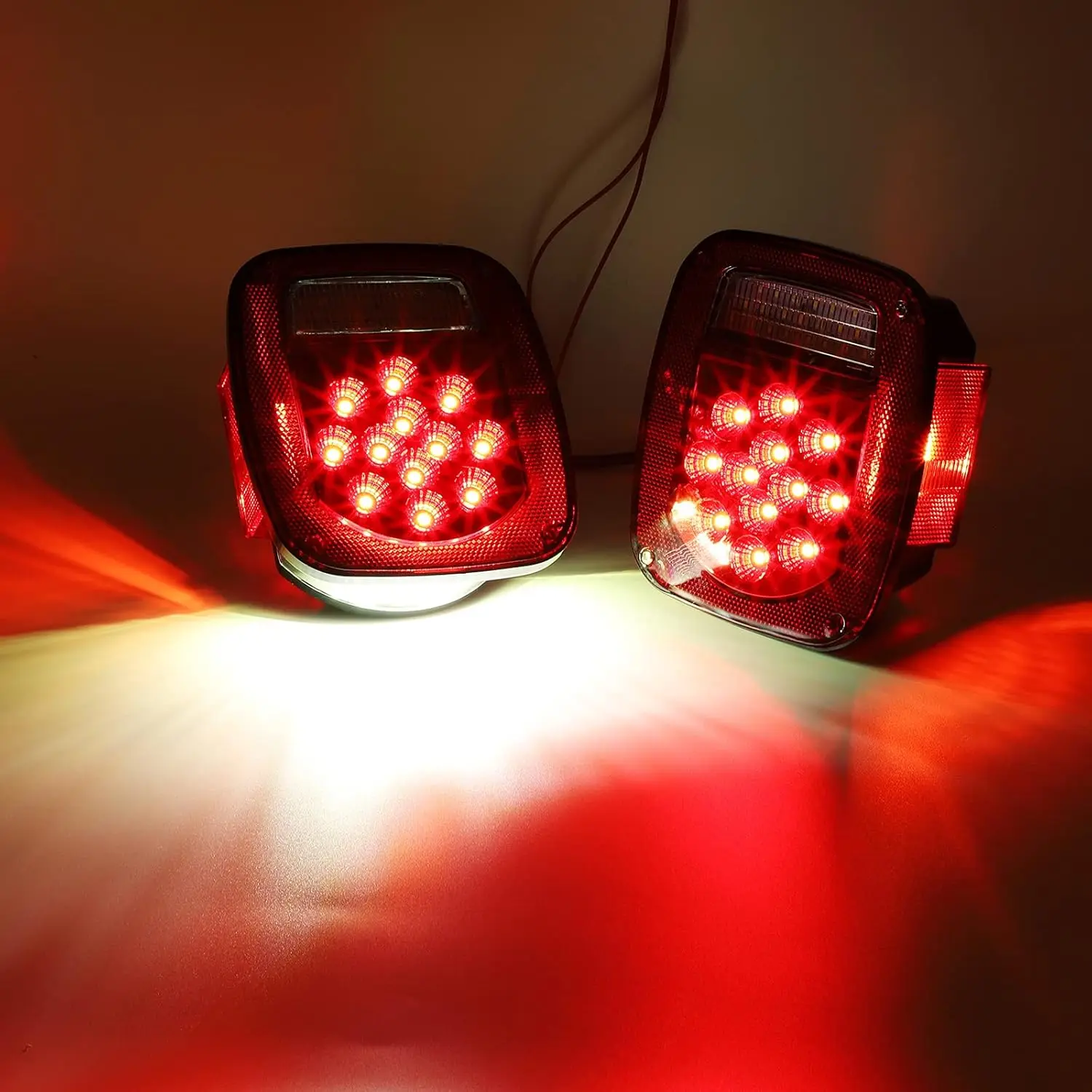 ·Package includes 1 set LED Tail Lights Assembly Kit, compatible with 1976-1983 CJ5 tail lights, 1976-1986 CJ7 tail lights, 1981-1985 CJ8 tail lights, 1987-1995 Wrangler YJ tail lights and 1997-2006 Wrangler TJ tail lights. Driver Side and Passenger Side are included. Come and replace your dim factory tail lights with our brilliant LED tail lights assemblies and get eye-catching;