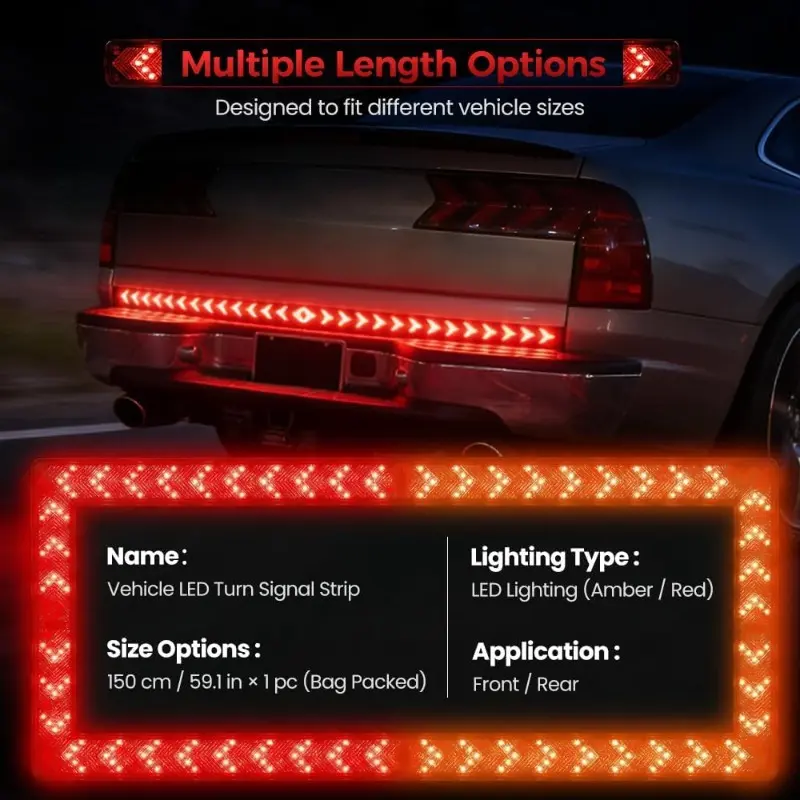 ·Sequential Turn Signals: Left sequential amber LED for rear left turn signal, right sequential amber LED for rear right turn signal.