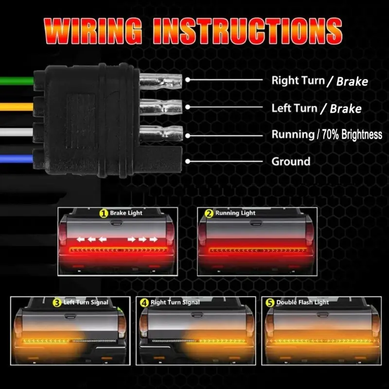·Connectivity: Plug and play with a flat 4-pin trailer connection harness for tail/brake/signal.