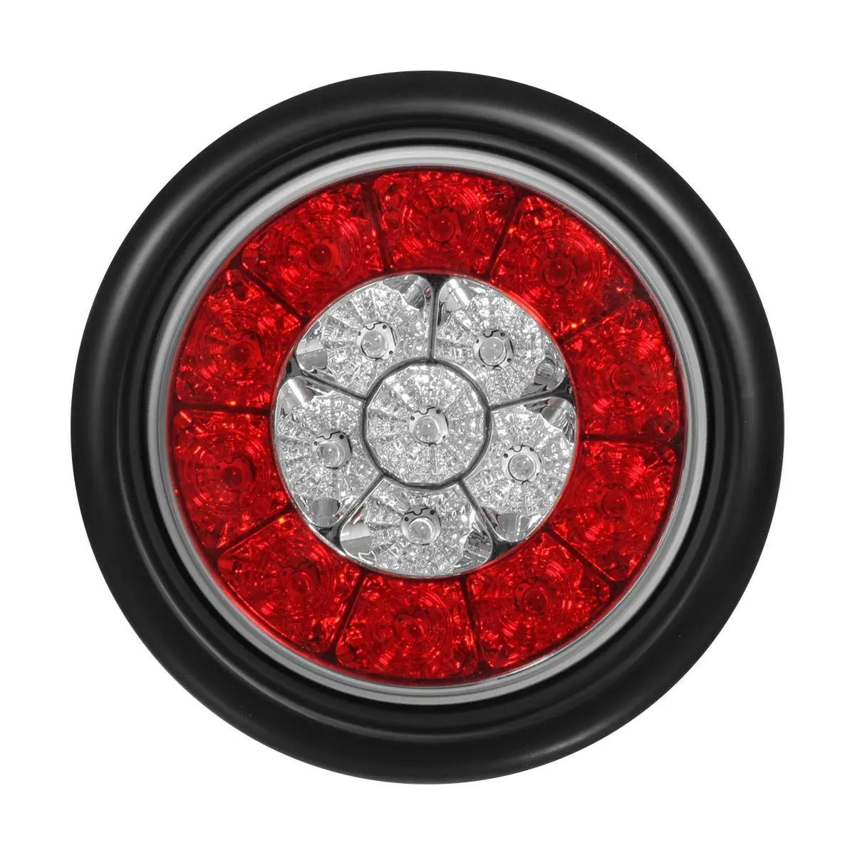 Combination trailer tail light serves Multi functions on trailers over 80" wide - 10 LED Red outer ring for tail lights and also brake functions and dual function White 6 LED inner circle for Reverse and Backup Functions;