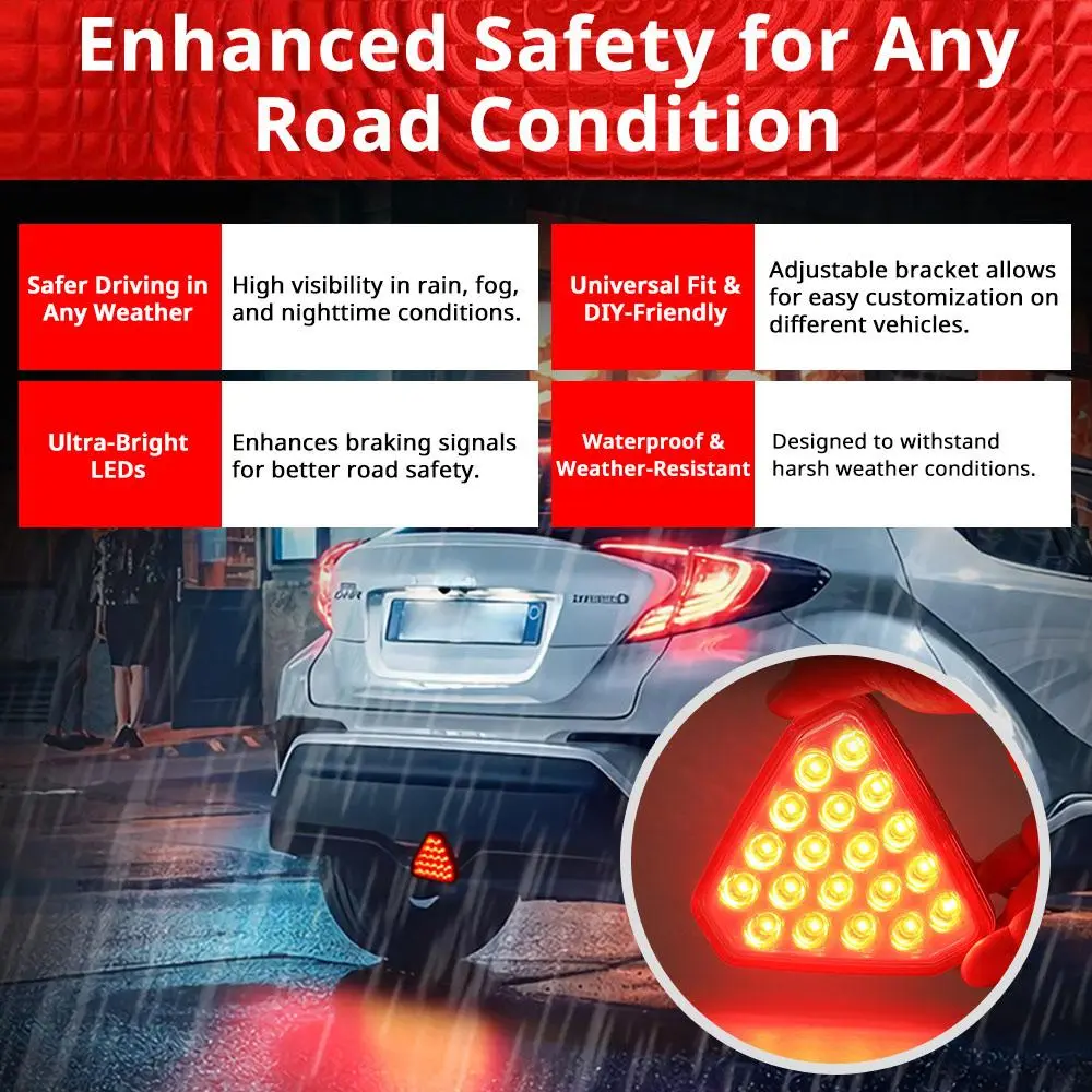 【Distinct Triangle Shape】: The unique triangle shape enhances visibility, making it a standout safety feature for all vehicles.