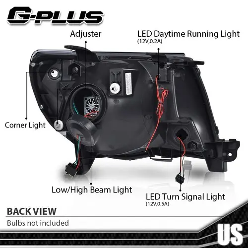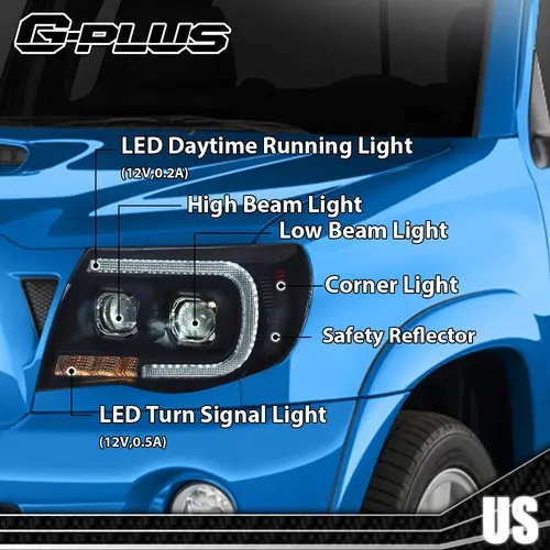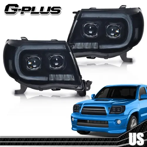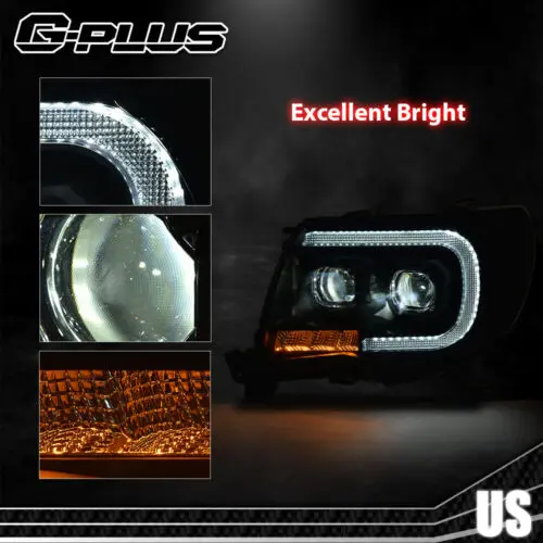 Fit For 2005-2011 Toyota Tacoma Smoked LED Tube Projector Headlights Headlamps