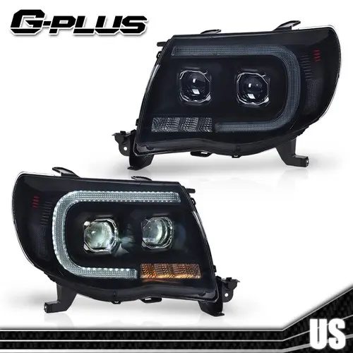 5. Fit For 2005-2011 Toyota Tacoma Smoked LED Tube Projector Headlights Headlamps