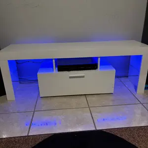 ·[Modern LED TV Stand]This LED TV stand features built-in LED lights,You can use the remote control to adjust the color and brightness of the light.16 light colors and 4 light changing modes.