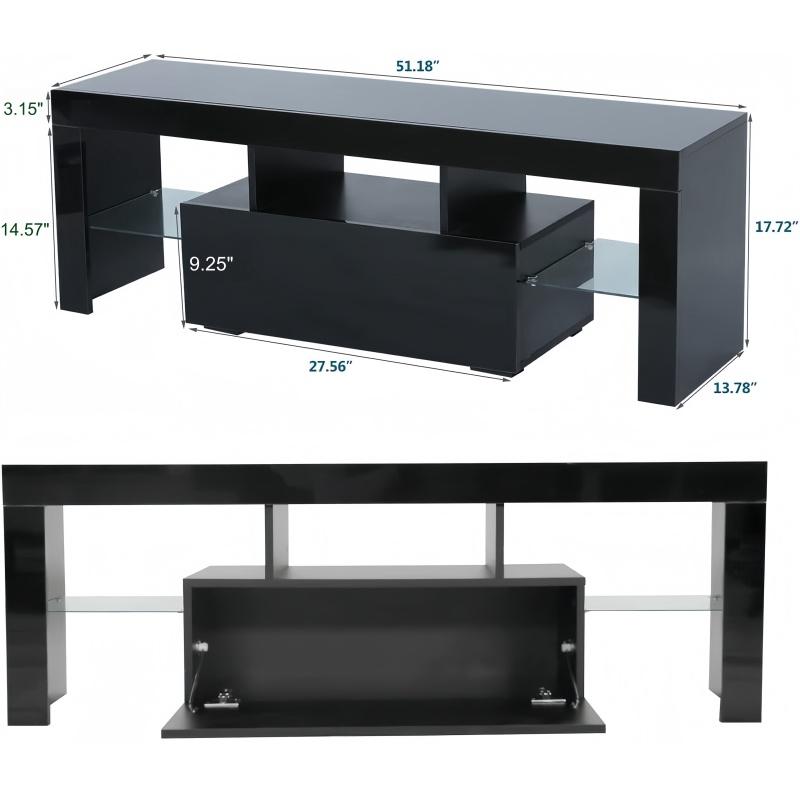 ·[TV Stand with Large storage]This LED TV stand has one large door ,you can put your CD,Xbox,switch,VCR,stereo in the middle door or glass partition.The design of the glass plate makes the TV cabinet more transparent.