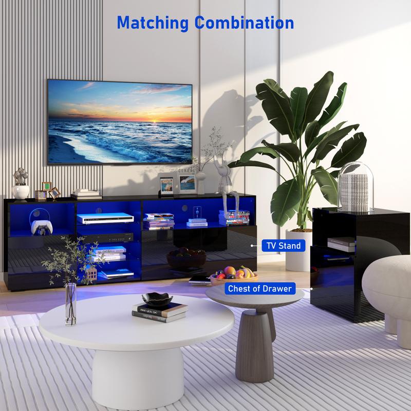 80IN TV Stand for 80,85inch TV:In order to meet the large size requirements of customers, we have upgraded the size to 79in.so you can take a look the tv stands for living room.The modern TV stand for is for 80,85inch TV. is for storing video games, movies, remote controls, entertainment accessories and more.Cabinet /15.8 bedside table Combination. You can combine them in any combination according to your needs.