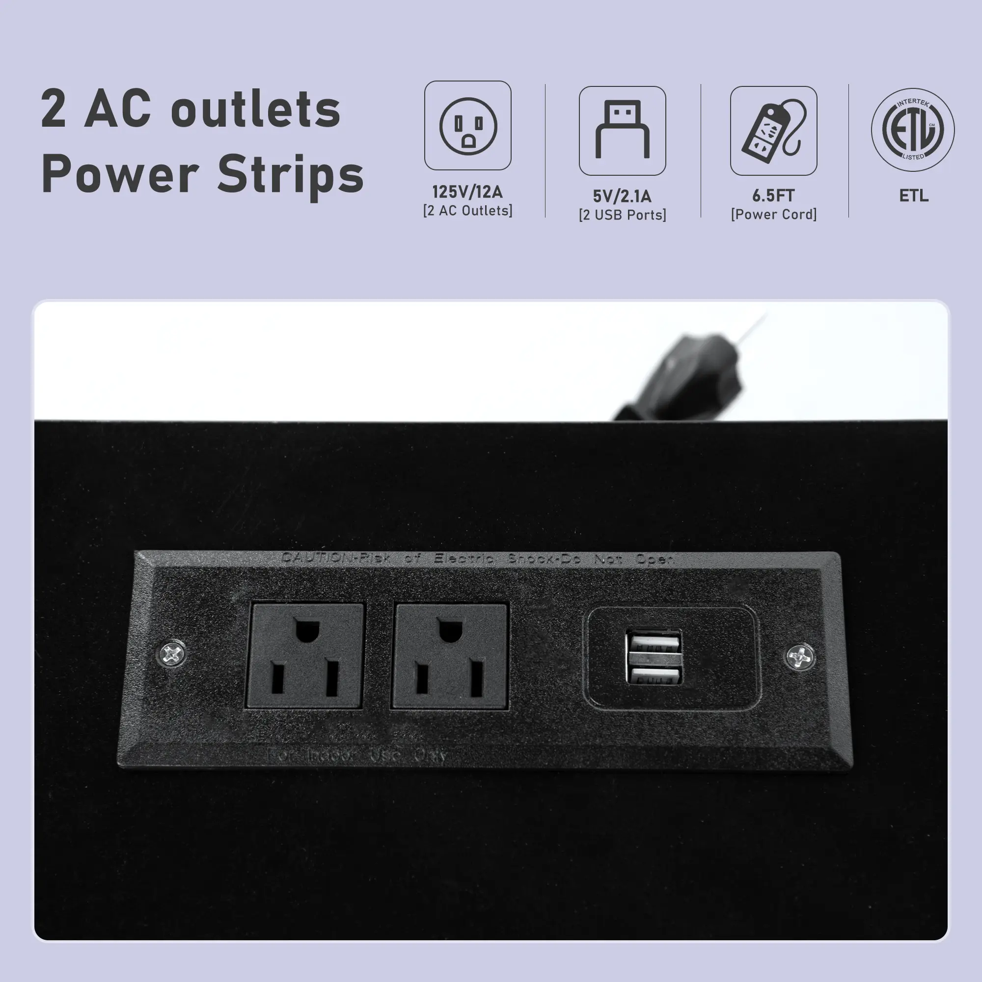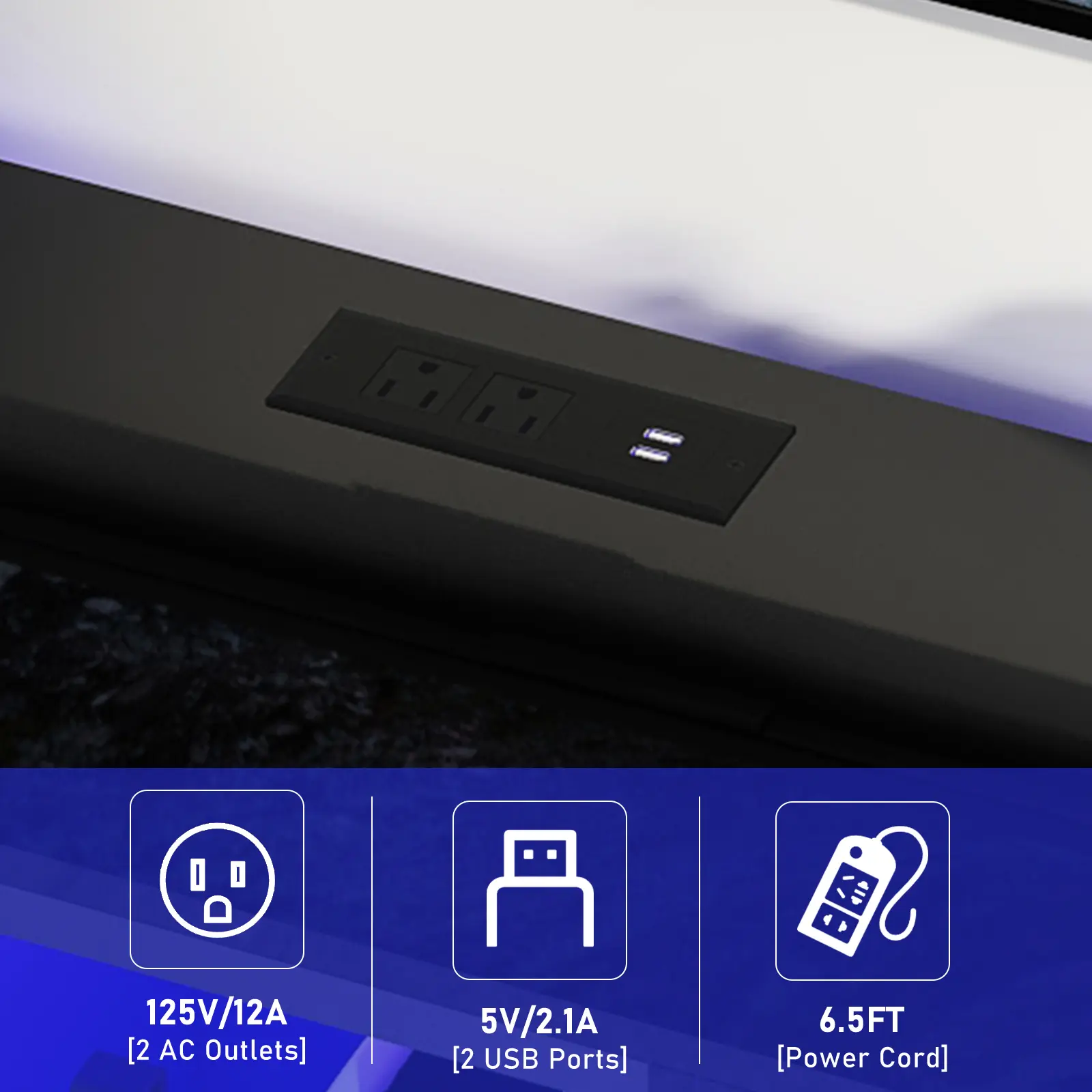 6.5 FT Power Outlets : Entertainment center desktop have 2 USB ports, 2 AC power outlets and a long 6.5FT power cord, providing unparalleled convenience for charging your basic devices such as TVs, mobile phones and game consoles, The outlet has obtained ETL certification. The hole on the back allows the cables of various devices to pass through, which is convenient for the organization and hiding of various wires.