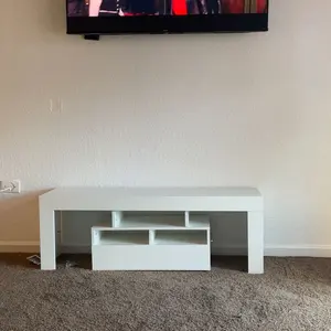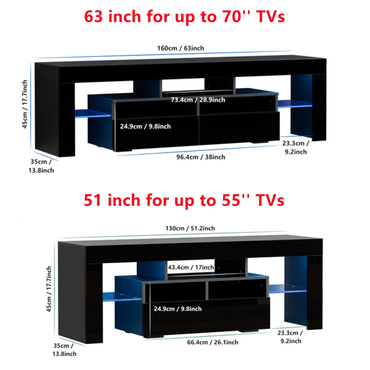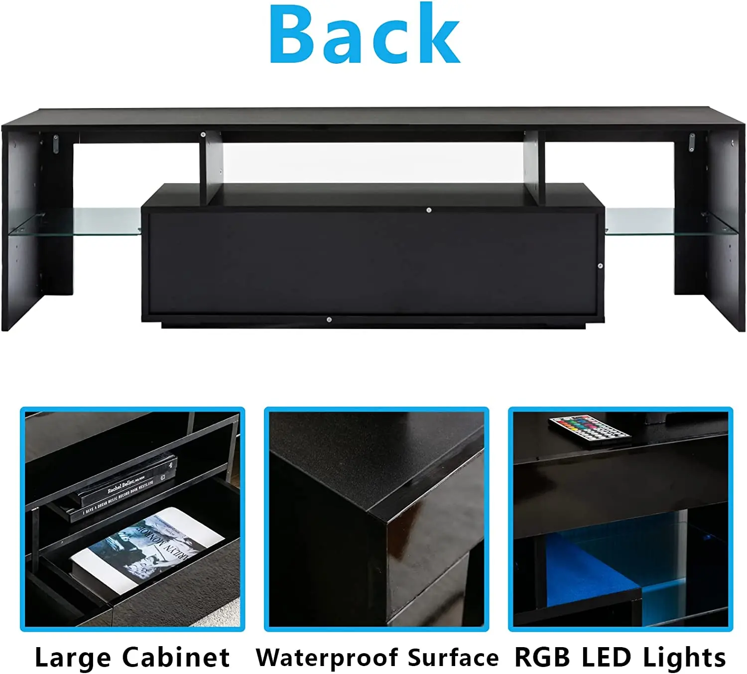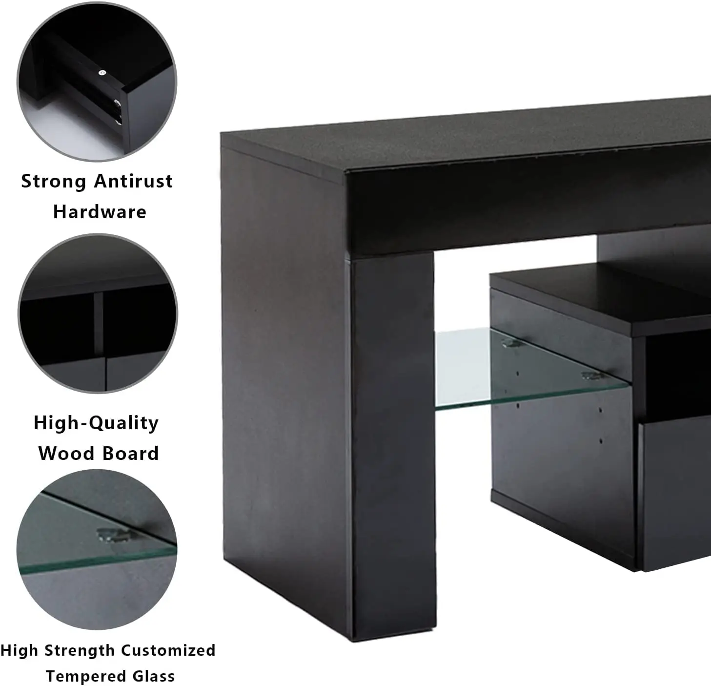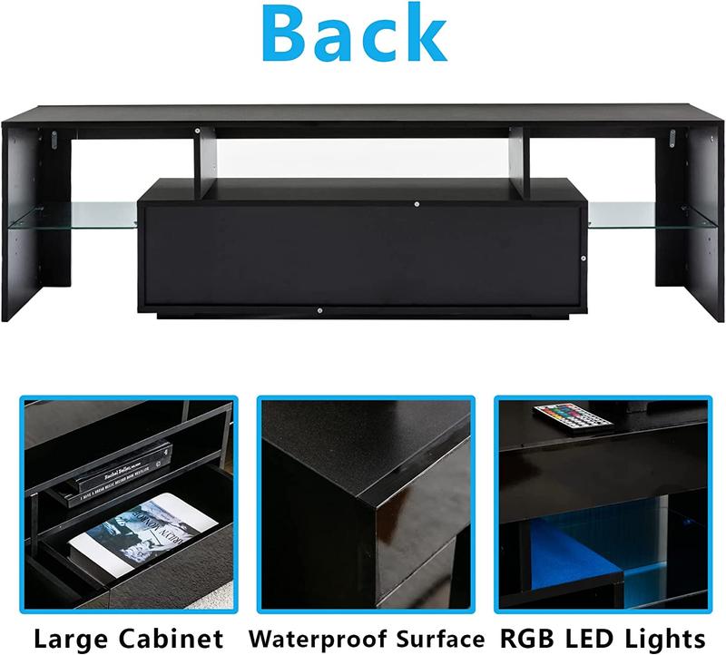 【Smart DIY RGB LED System】The tv stand equipped with 24-key remote control, you can enjoy 16 colors of RGB lights and 6 change modes by remote control or mobile app. The LED system with memory function allows you to save your favorite dazzling colors and make your room more enjoyable.