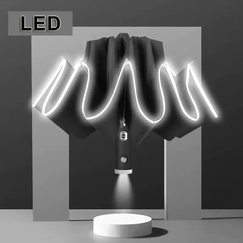 LED Umbrella Male Fully Automatic Reverse Umbrella Female Dual Purpose Folding Automatic Umbrella Large Size