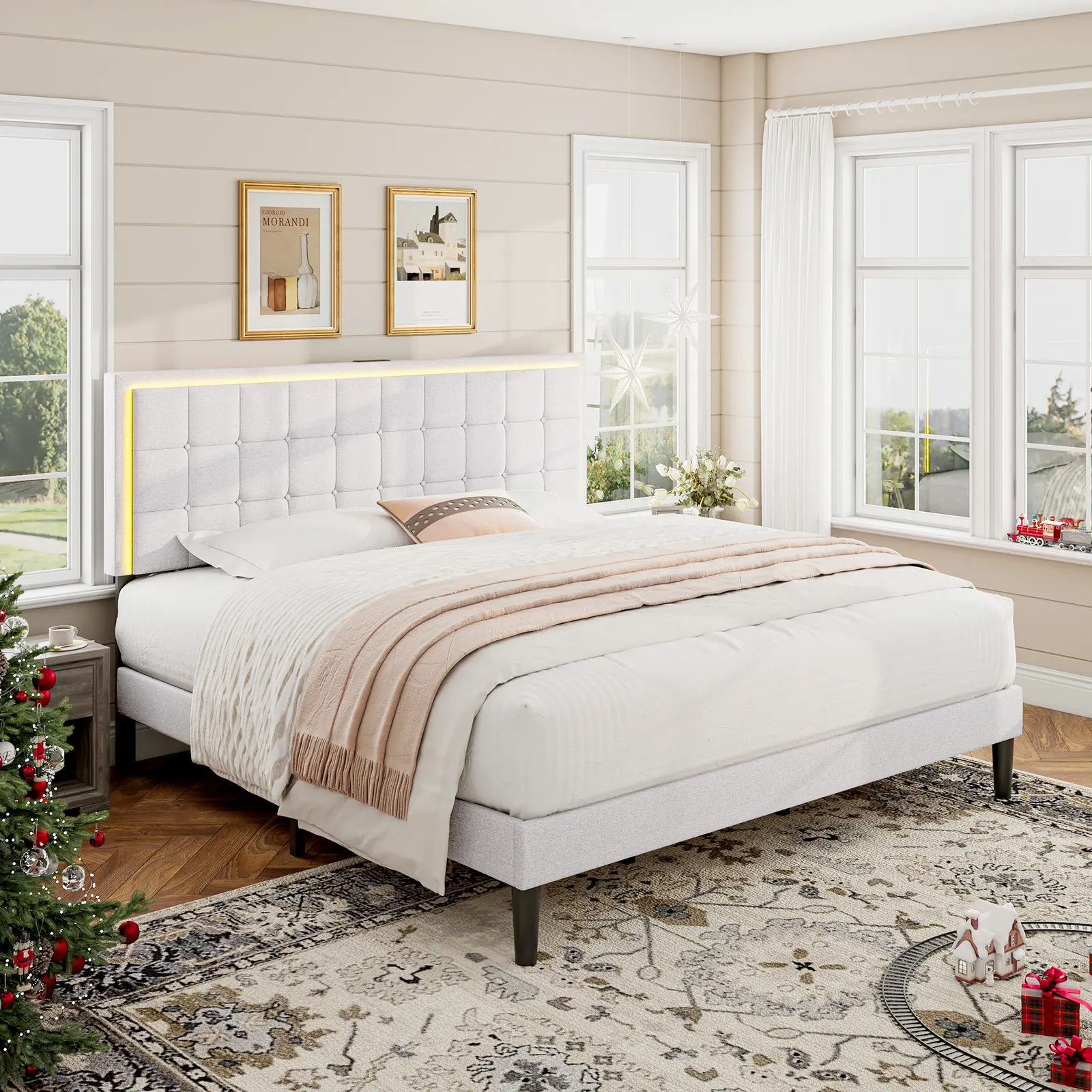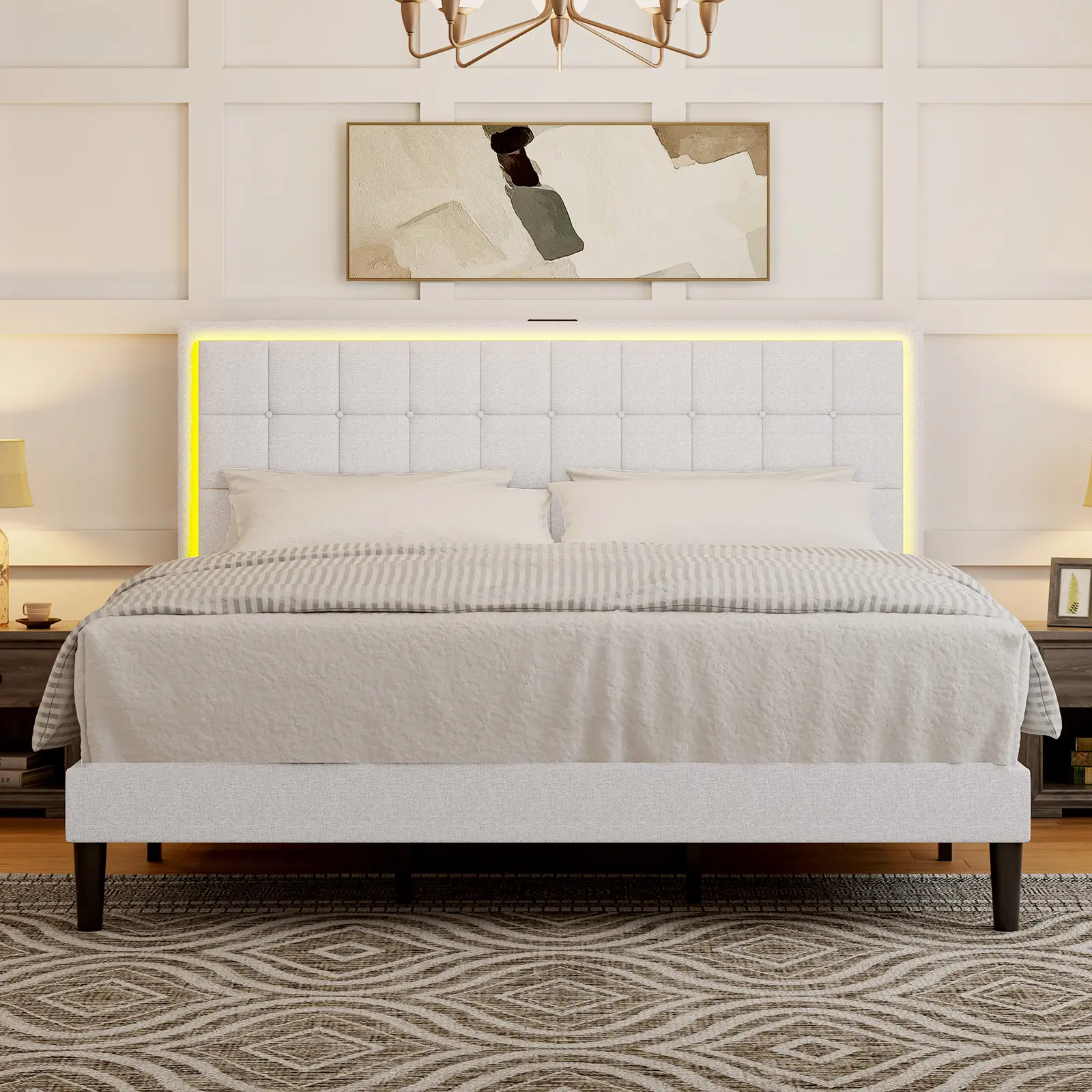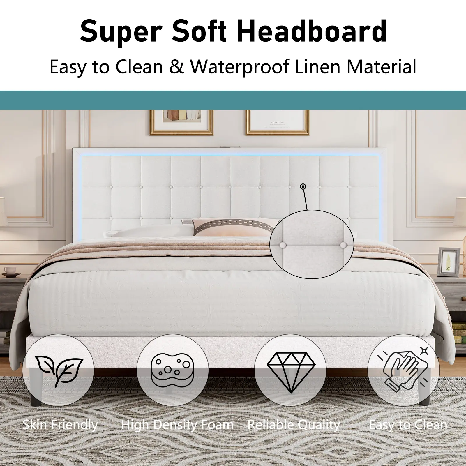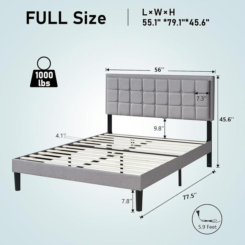 ·【Upholstered Headboard】Linen material headboard, soft and breathable, allowing you to sleep comfortably; button tufted design makes your bed extra fashionable and eye-catching.