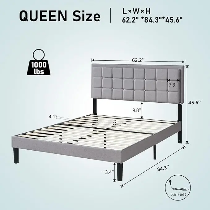 ·【Convenient Charging Station】The queen size bed frame with 2 standard plug outlets and 1 USB ports, keeps your devices within easy reach, meets your daily needs. Never worry about low battery again with this ultimate charging station.