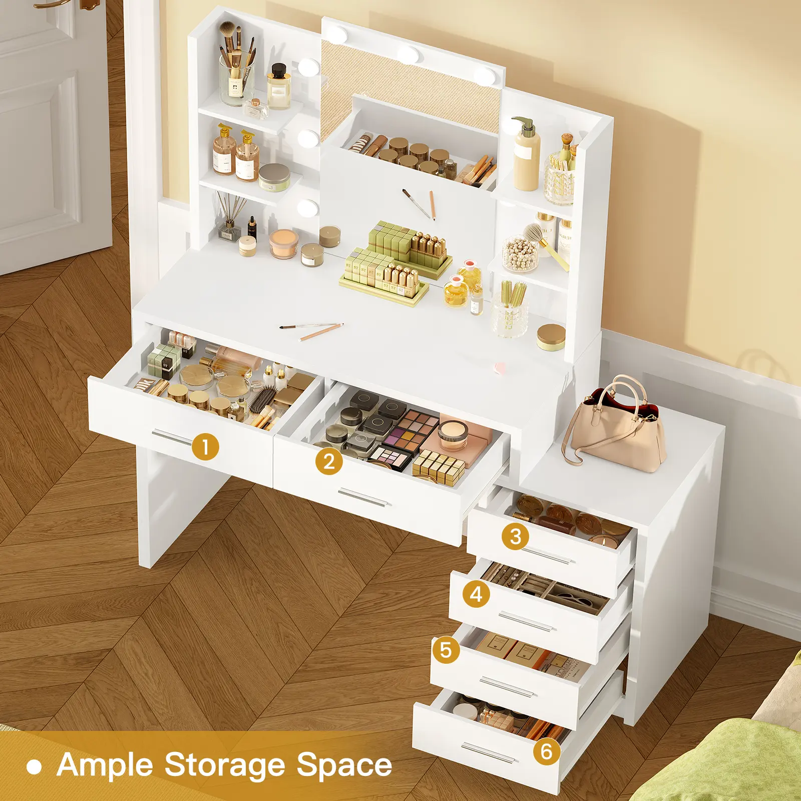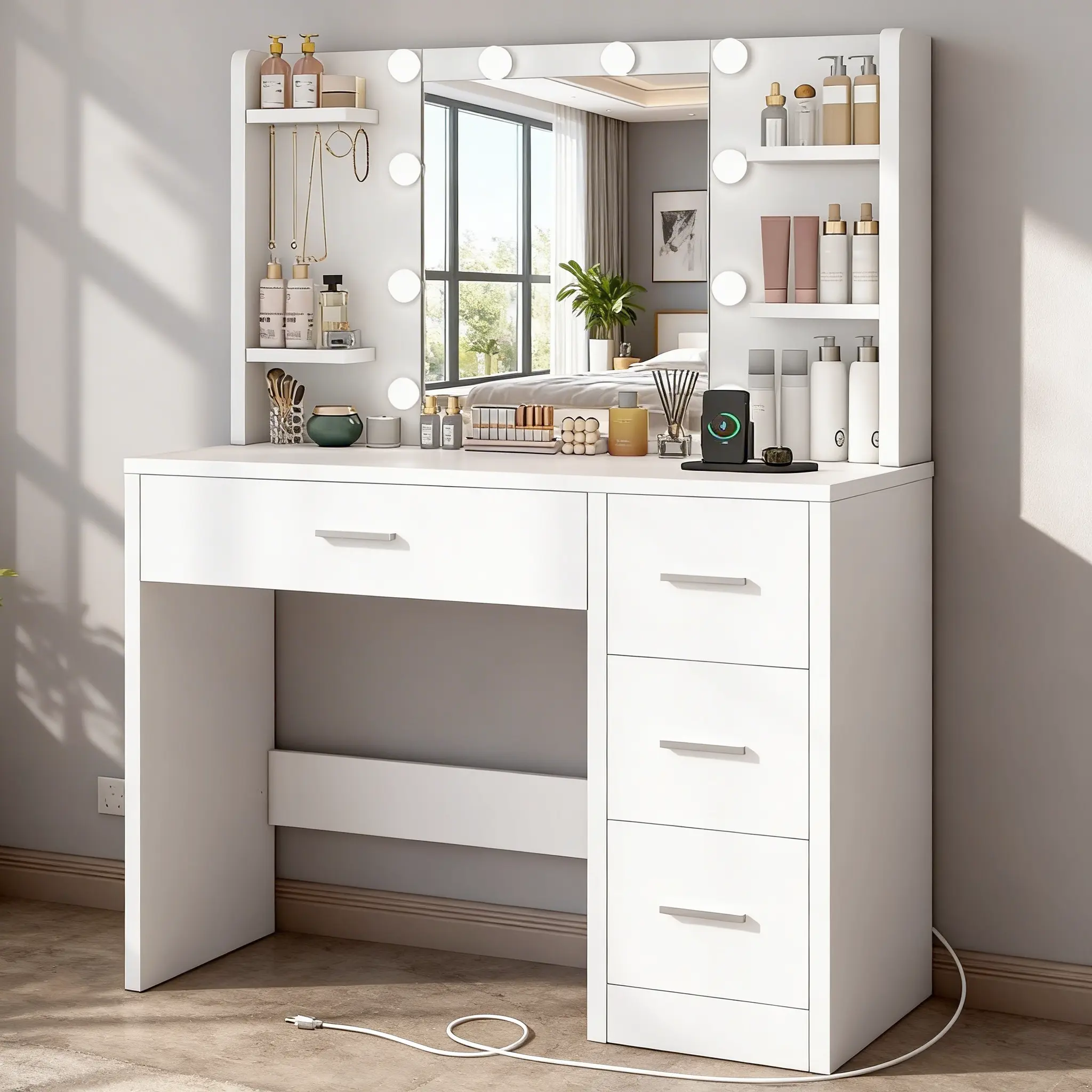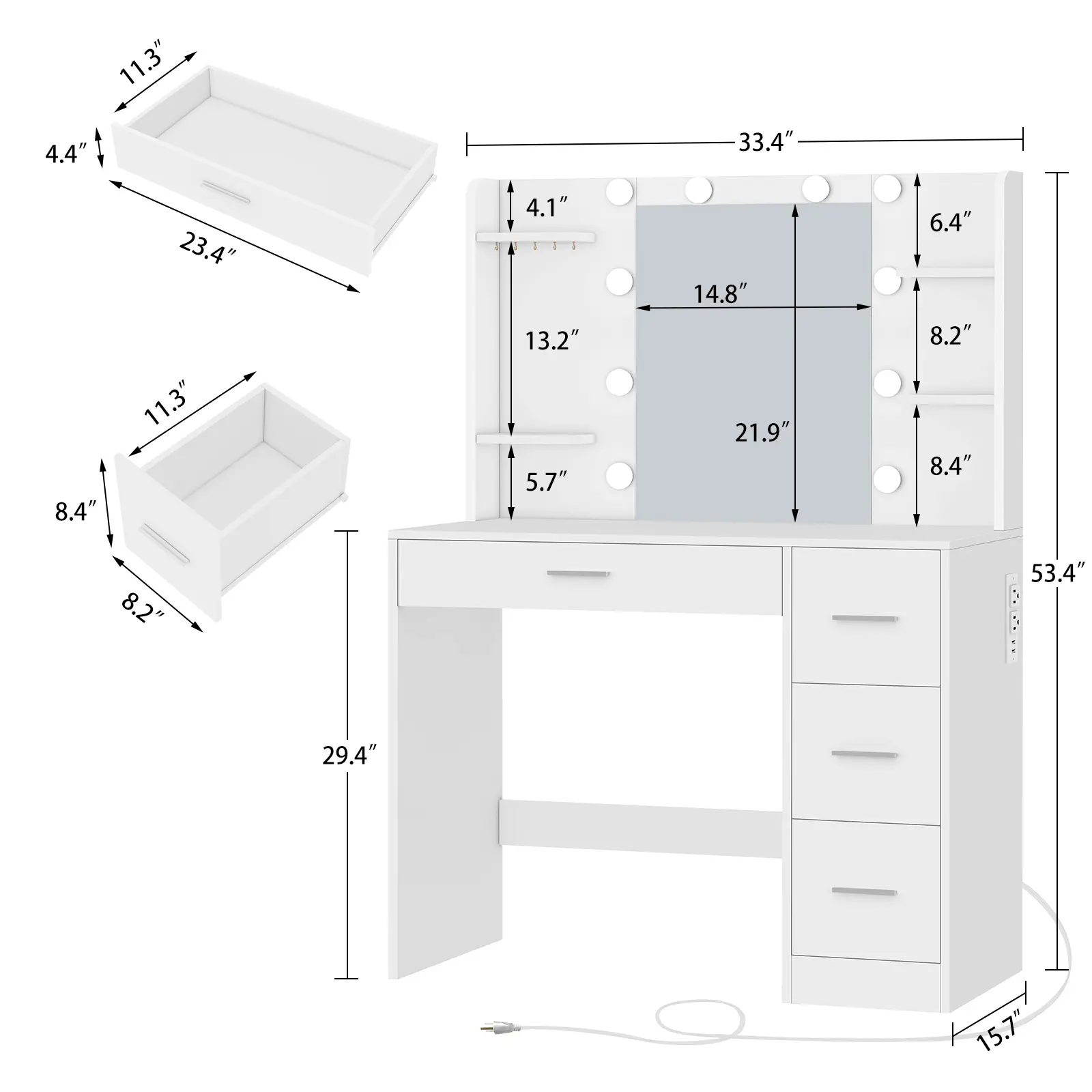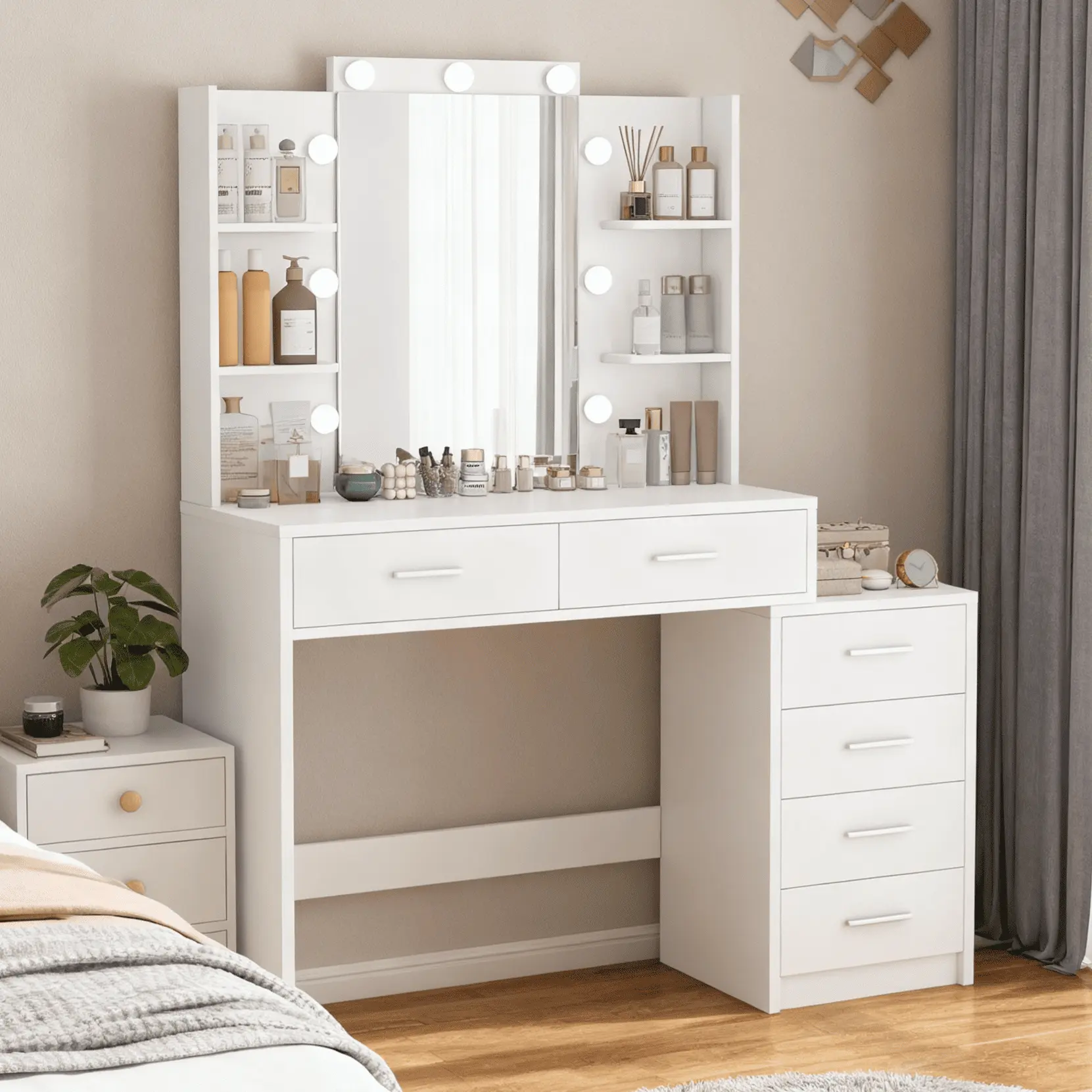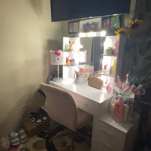 I bought this vanity for $130 because I’m very budget-friendly, and overall I do like it. The mirror and lighting are great, but just know the vanity is much lower and smaller in person. You’ll need a short chair, and the side shelves only fit about 2–3 perfume bottles each. The drawers are smooth, but I wish the whole vanity were taller. For the price, it’s still a nice, compact option—just be aware it’s on the smaller side.