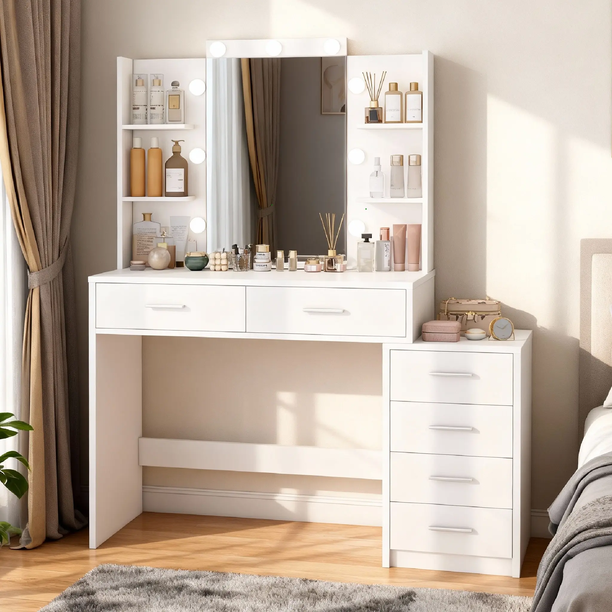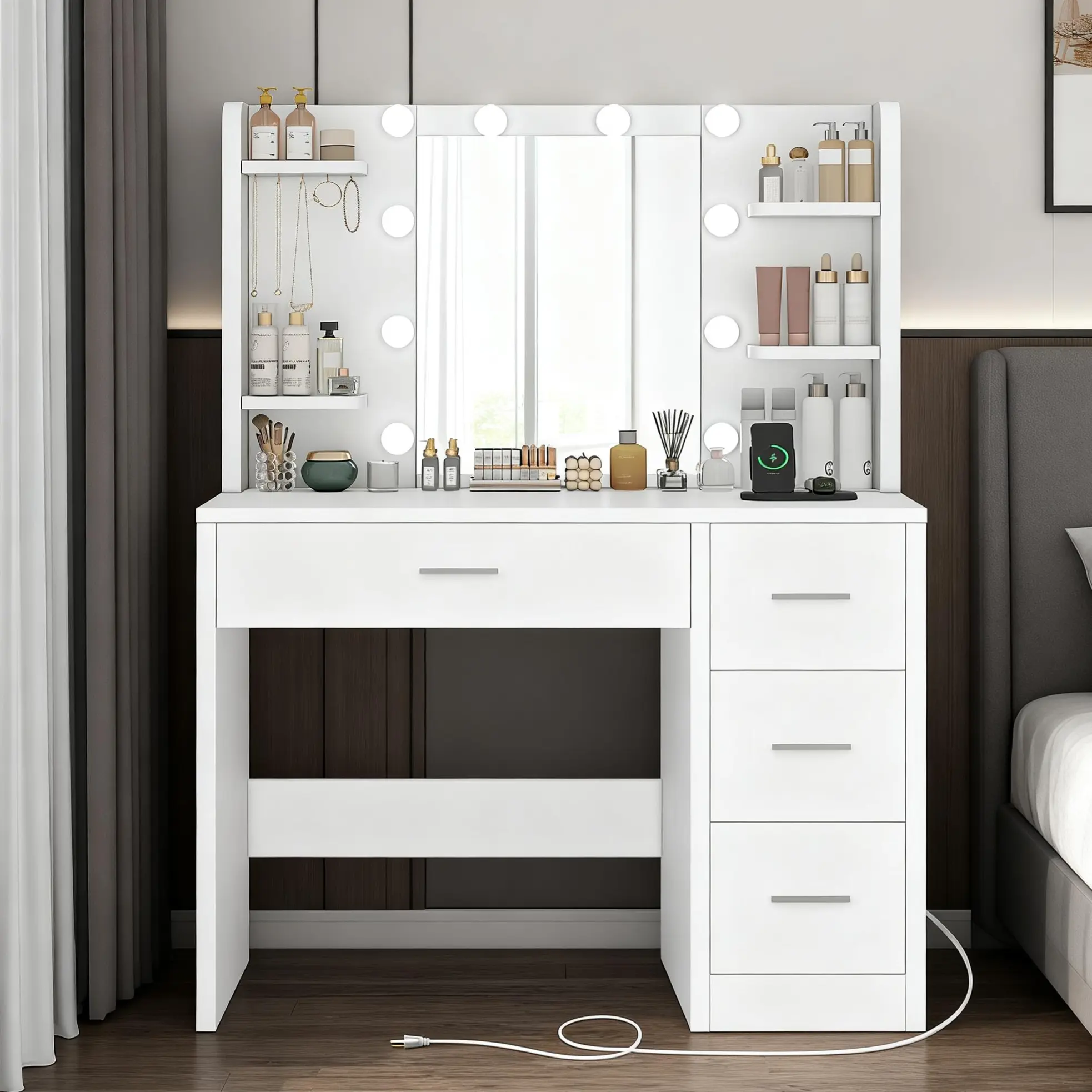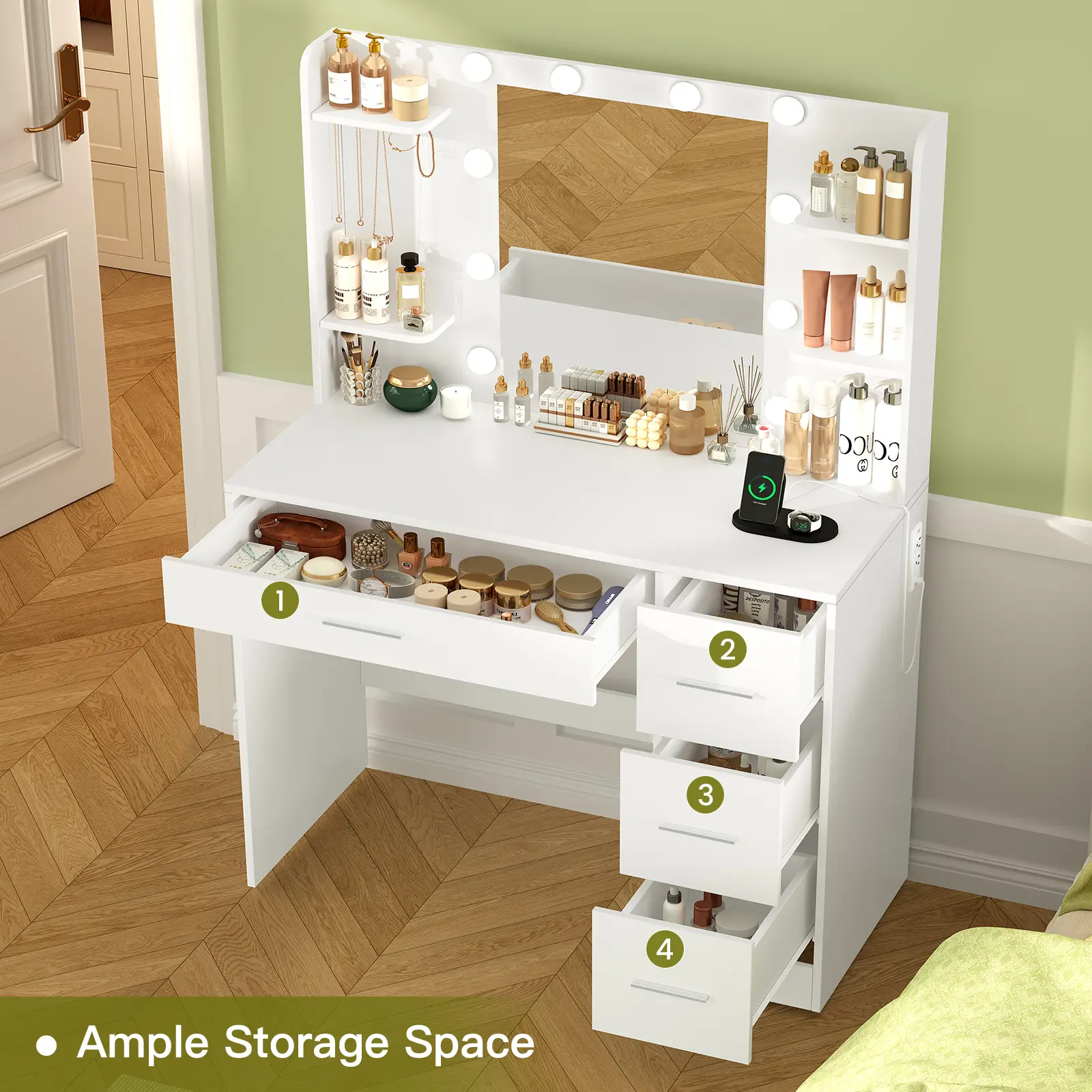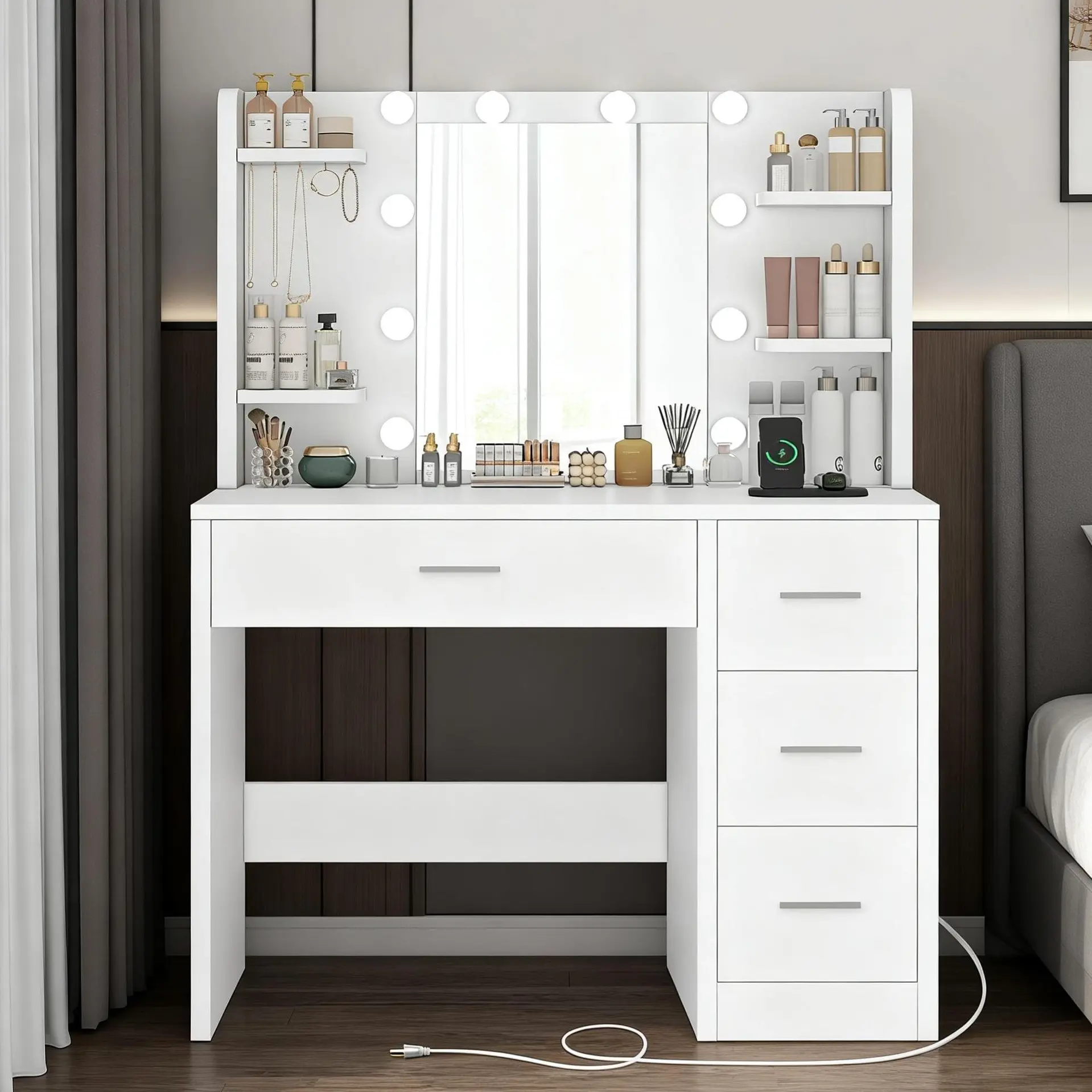 I bought this vanity for $130 because I’m very budget-friendly, and overall I do like it. The mirror and lighting are great, but just know the vanity is much lower and smaller in person. You’ll need a short chair, and the side shelves only fit about 2–3 perfume bottles each. The drawers are smooth, but I wish the whole vanity were taller. For the price, it’s still a nice, compact option—just be aware it’s on the smaller side.
