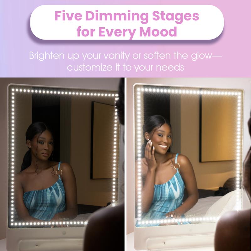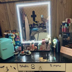 This mirror changed the look of my entire makeup station! I’m obsessed with the lighting and optional brightness settings! The order can in extremely fast and was packaged well with no marks on it! I’ve been waiting 2 years to pull the trigger and buy this and I am so glad I did!