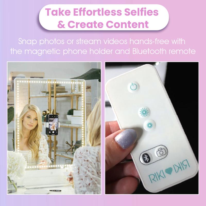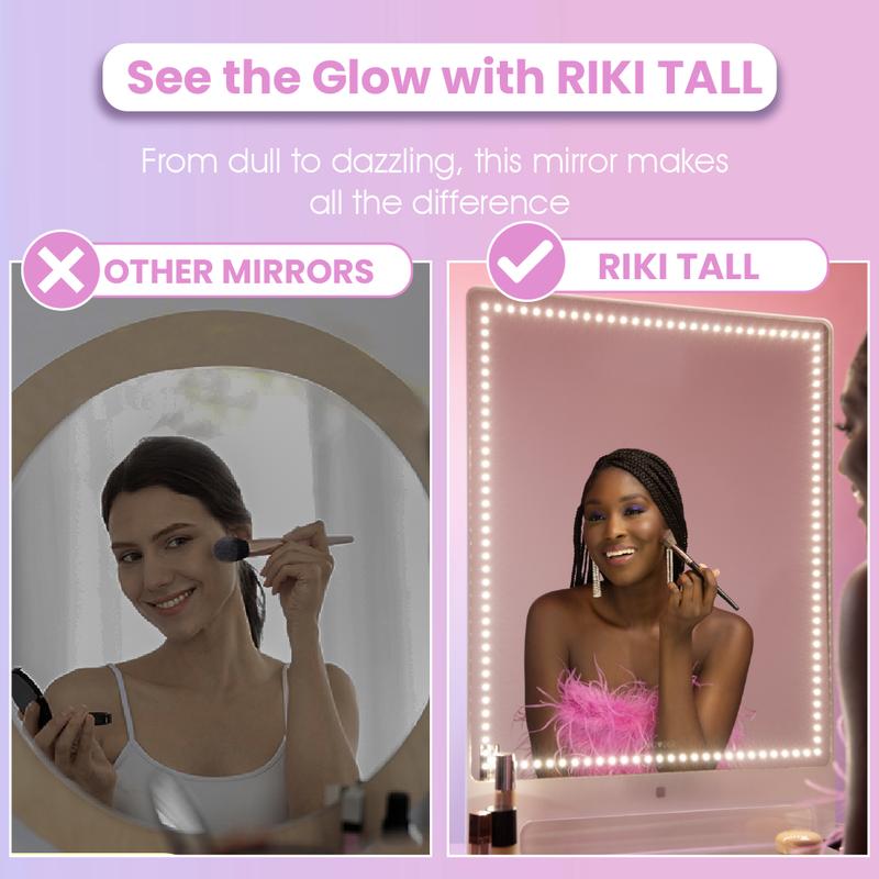 I absolutely LOVE my Riki tall mirror!!! It’s perfect for my online makeup business! Love the light settings - the quality is amazing on my lives & in pictures I’ve taken! Speaking of pictures, the Bluetooth selfie remote is sooooo cool! 100% get this one, you won’t be disappointed!