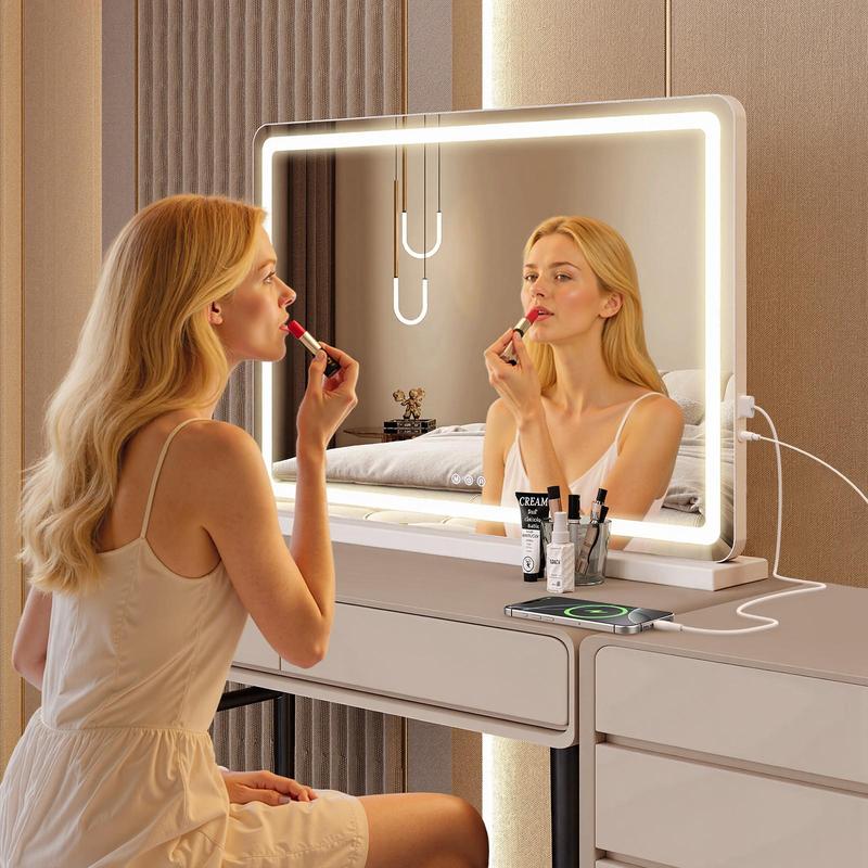 This mirror is great!! Perfect size for a desk. The light settings are so handy! Plus it dims and brightens!
