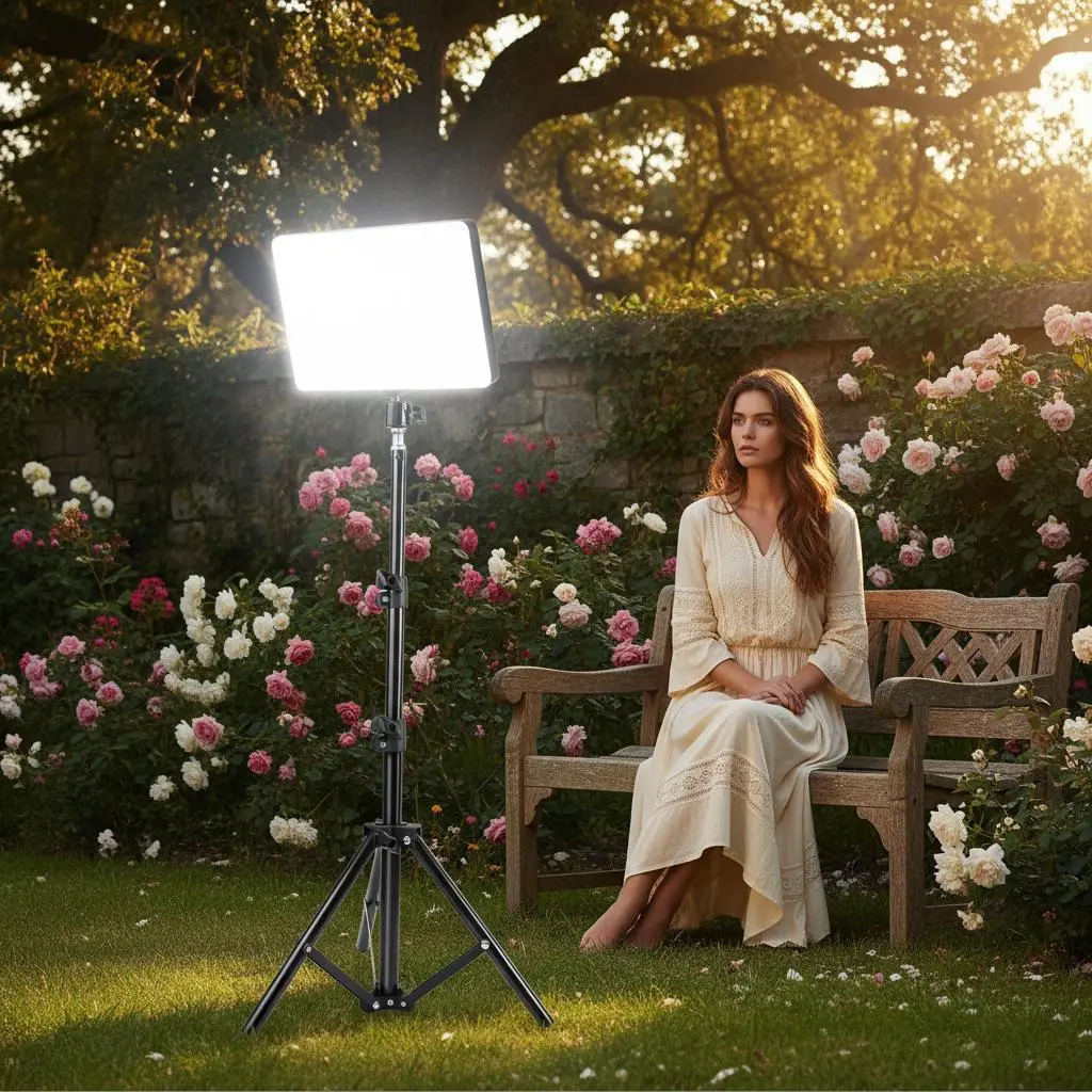 10" LED Video Light Panel With Tripod Stand - Dimmable Bi-Color 3200-6500K Studio Light (CRI97+) - Perfect For Streaming/Photography/Podcasts/March Madness/Spring Break - Content Creator Pack / International Women's Day