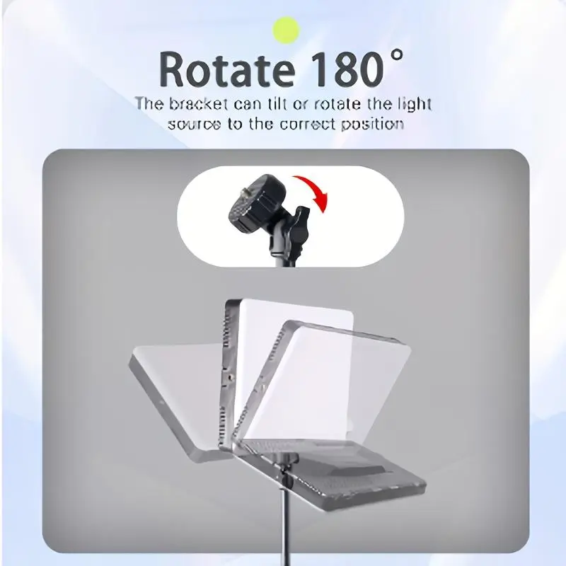 ·【Adjustable Light Stand & 180° Tilts】 This LED photo and camera film light kit includes a tripod stand adjustable from 15.7" to 43" (40-110cm), offering flexible height options to suit different shooting needs. Made of quality aluminum alloy, the stand supports loads up to 4lb (2kg), providing stable and secure support for the light. The light head tilts 180° forward and backward to cover versatile lighting angle. A carrying case is included for easy storage and transport