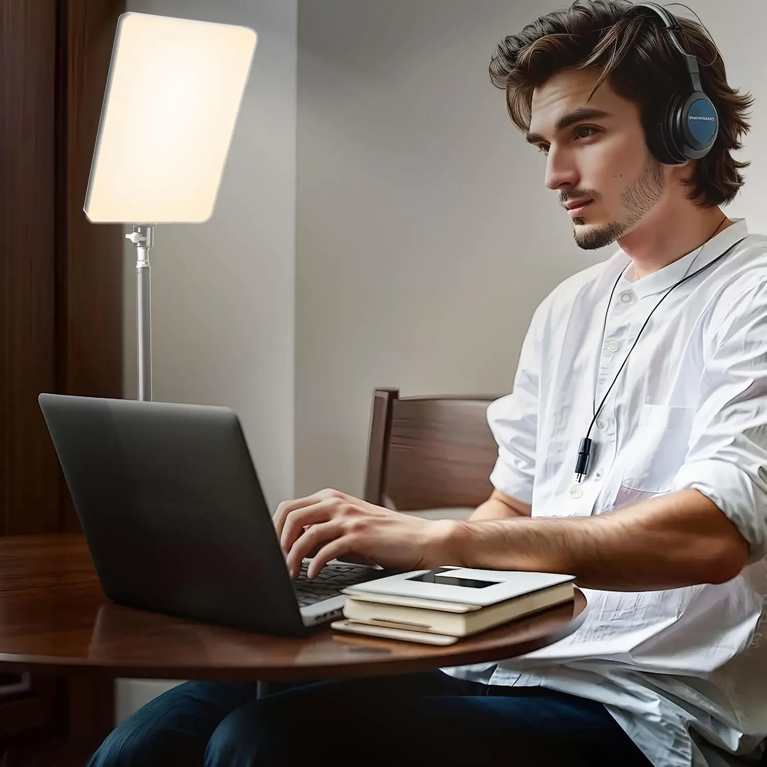 ·【Natural & Soft Panel Lighting】 The evenly distributed across a wide panel measuring 9.1"x1"x6.3" (23x16cm), delivering soft, natural, and eye friendly light with no glare. It provides broad light coverage with minimal shadows and reduced dark corners. An HD LCD screen on the back of the light head clearly displays color temperature, brightness, and battery status for easy monitoring