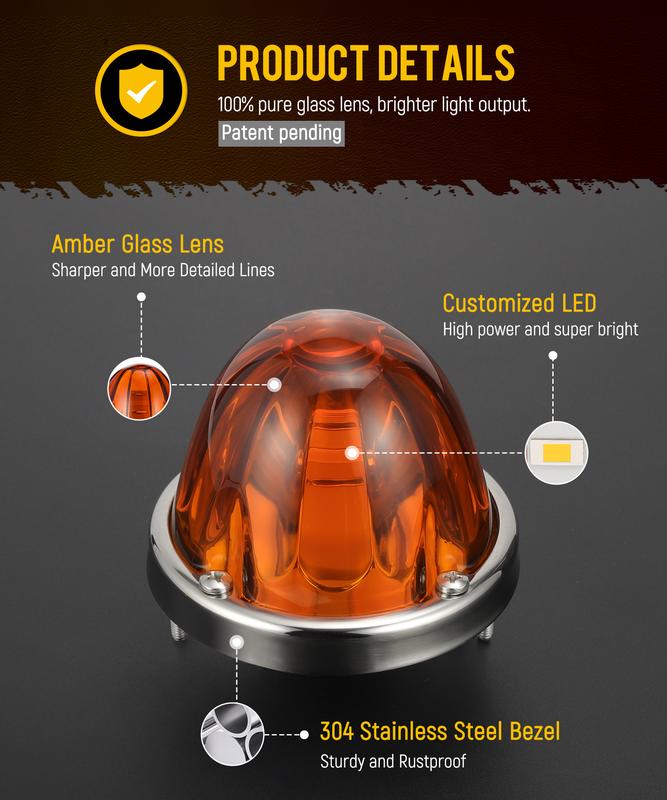 ·[Super Bright][Patent Pending] The watermelon lights built-in customized high-powered LED emits super bright starburst pattern light, and glass lens design makes the light sharper and more detailed lines, making your trucks much more eye-catching