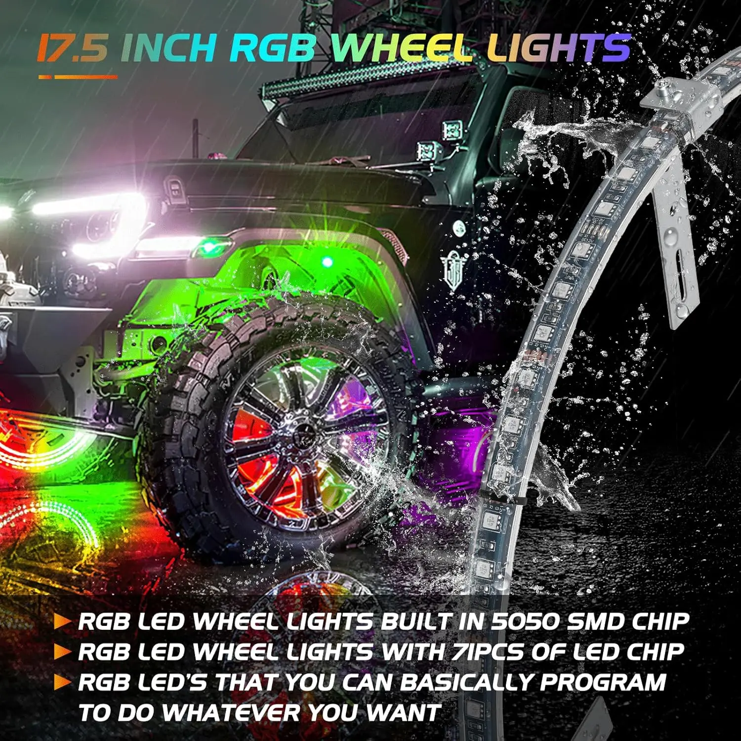 The wheel ring lights are made of waterproof material. Ensure it can work on any rainy and foggy days.