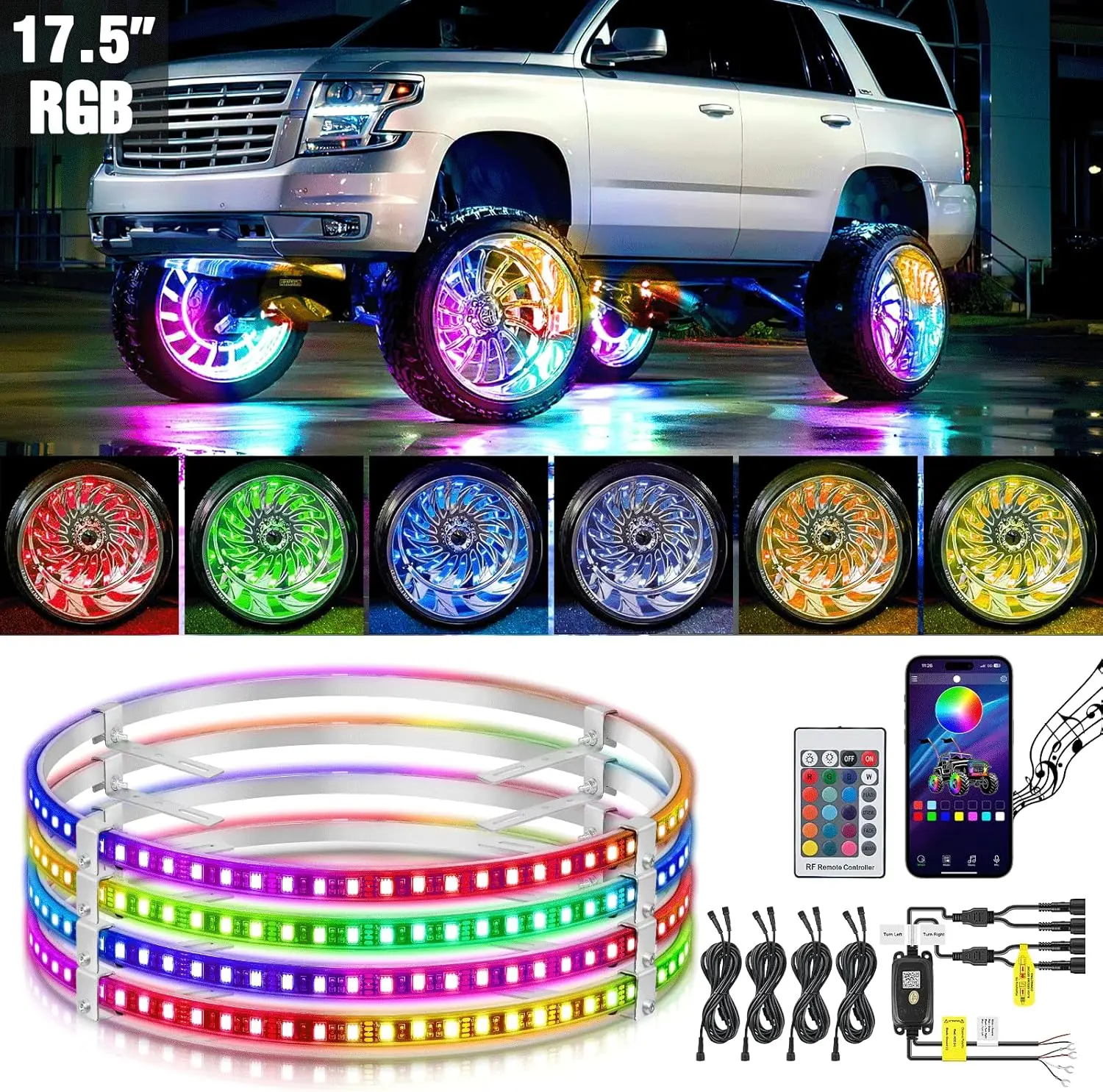 5. Nilight 4PCS 17.5inch LED Wheel Ring Lights RGB with APP and Remote Control Neon Wheel Rim Lights Million Colors w/Turn Signal and Braking Function for Car Van SUV Truck underglow kit ambient dealsforyoudays double row