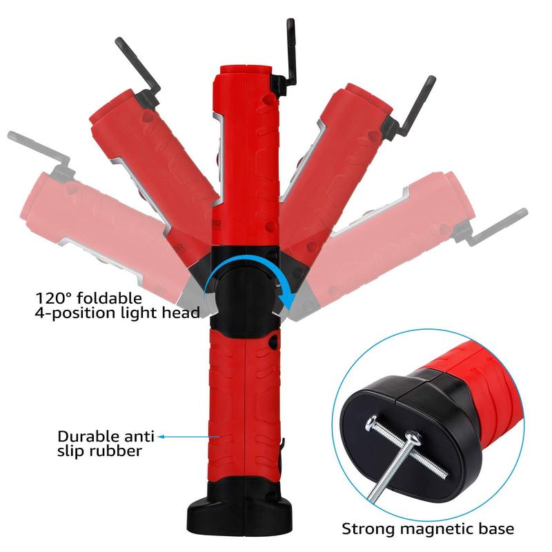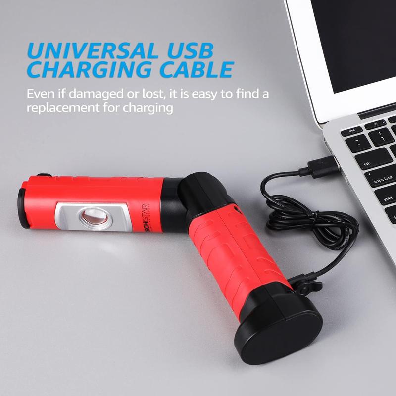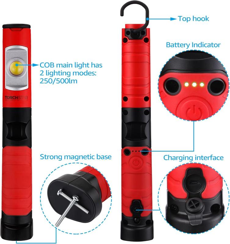 The TorchStar Portable Work Light is a versatile handheld LED flashlight with a foldable design, suitable for auto repair, car traveling, camping, and more.