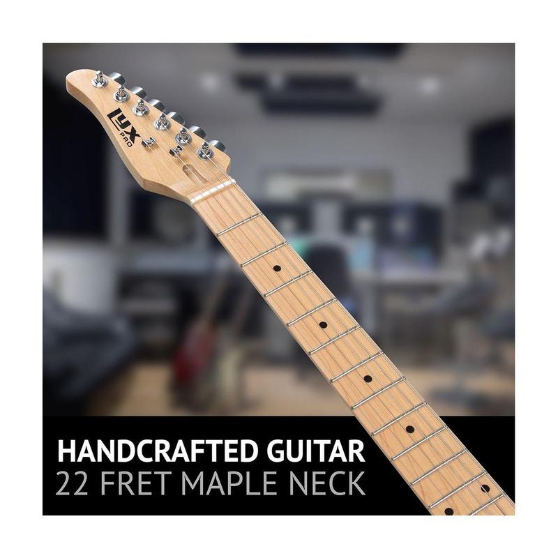 Unleash your inner rock star with this natural wood electric guitar and get started on your musical journey. From LyxPro.