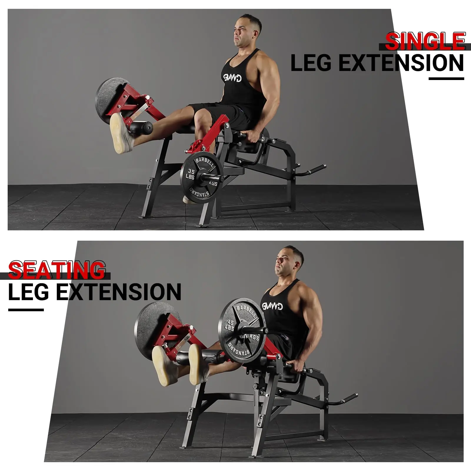 ·4 in 1 leg machine: GMWD LE03's basic use function reaches 4. Two kinds of leg curl - standing single leg curl and lying leg curl. Two kinds of leg extension - seating leg extension and single leg extension. LE03 will get more possibilities in your home gym to explore a fun leg day.