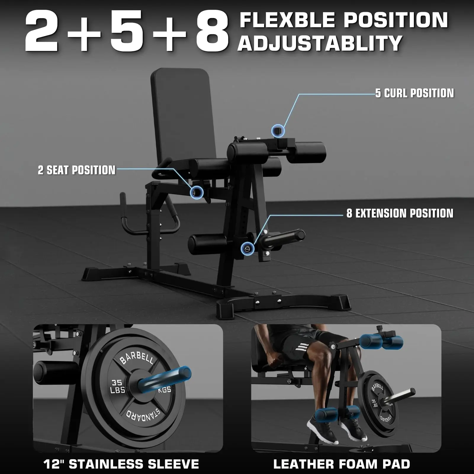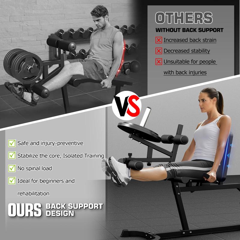 ·[Comfortable V-Bed Design]Two dedicated seat settings and a 15° V-shaped bed help position your body correctly for each exercise. This design reduces joint stress and keeps you focused on effective, safe leg training.