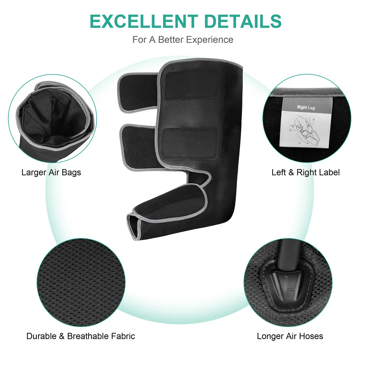 It says massager but this only inflates around the calve and foot. I placed heat on highest setting and still did not feel it. I knew it was compression air but since it said massager i figured it would at least "roll" the air like a kneader does but it doesn't. Returning.