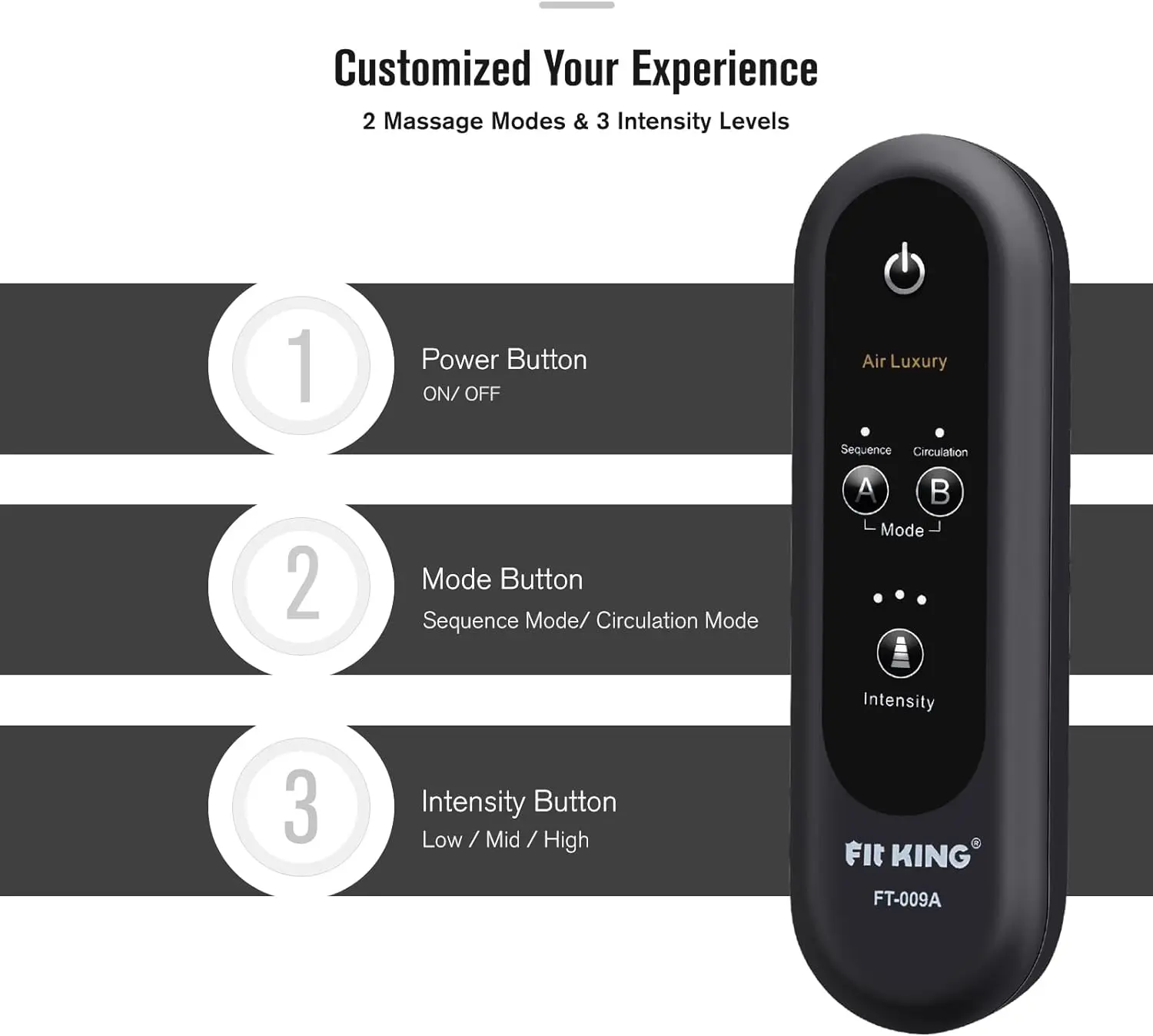 ·2 MODES & 3 MASSAGE INTENSITIES - you can easily control this massager by the handheld controller, 2 massage modes and 3 Intensities selectable, powered by DC12V/1A adapter (UL Plug), very easy and convenient to use.