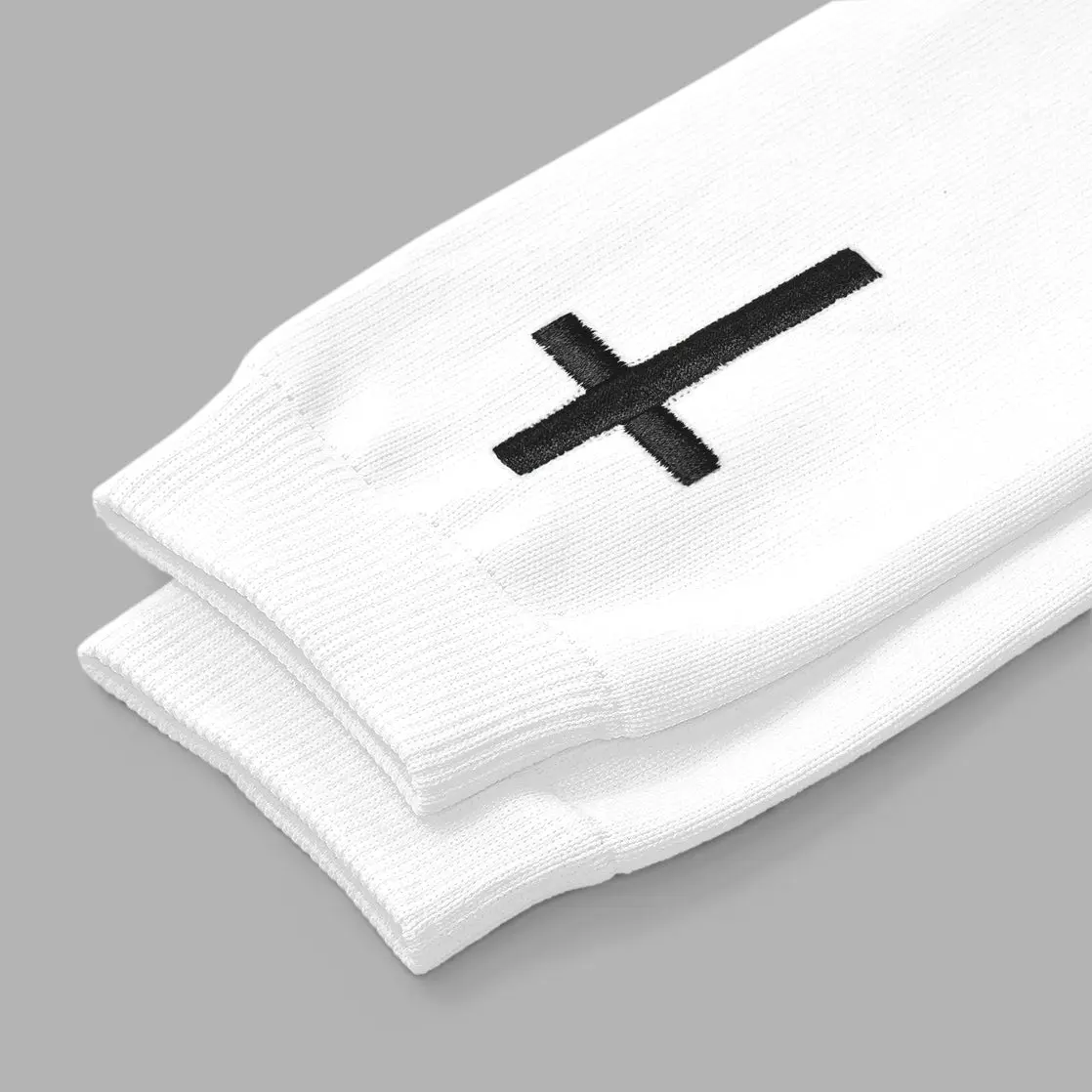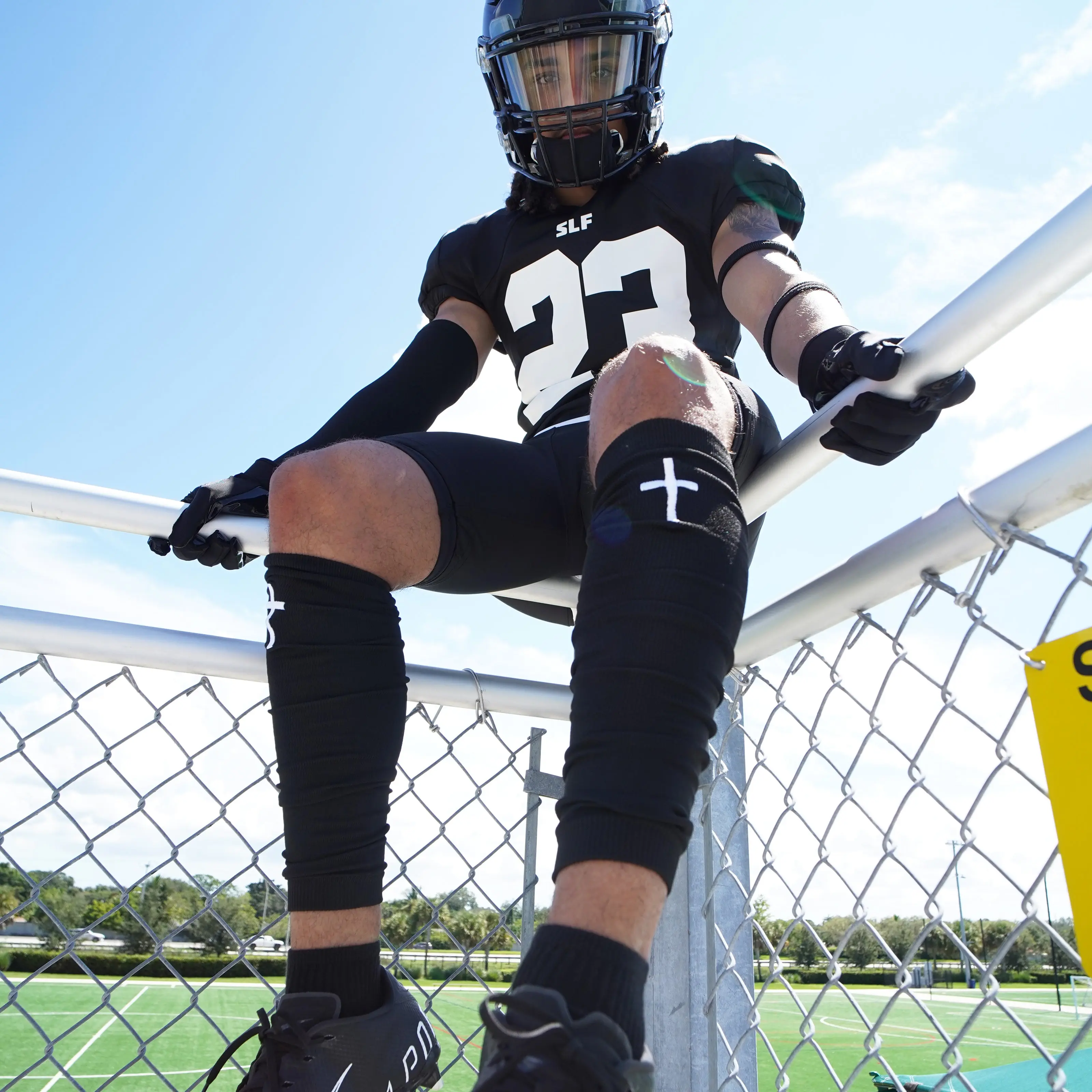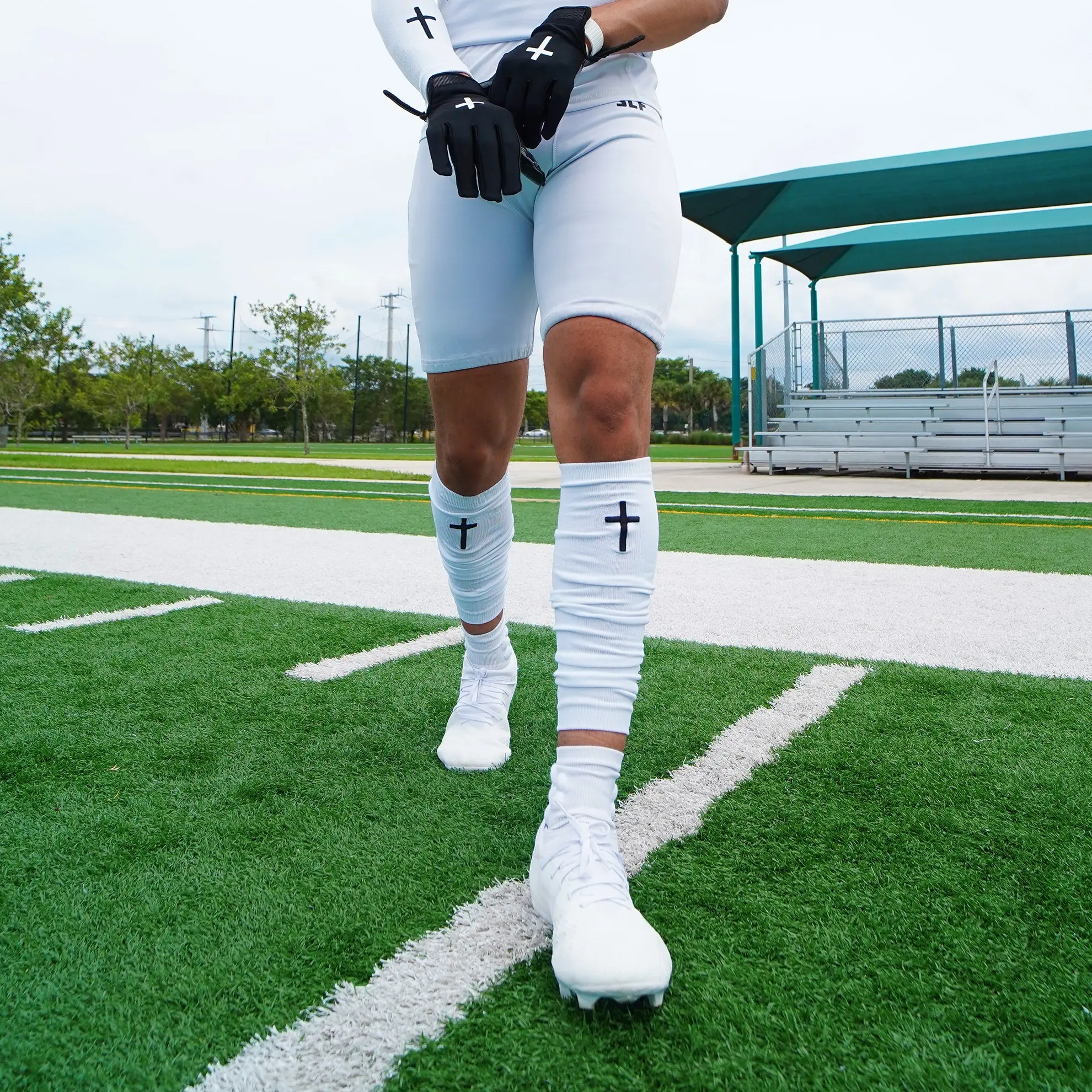 The Faith Cross Scrunchie Leg Sleeves are designed for youth athletes. Crafted from 4-way stretch fabric, these sleeves provide excellent compression and moisture-wicking. Stay dry and comfortable during intense workouts. The unique scrunchie design resembles a multi-layer wrap, allowing you to express your style while displaying team colors. Reinforced stitching ensures a secure fit.