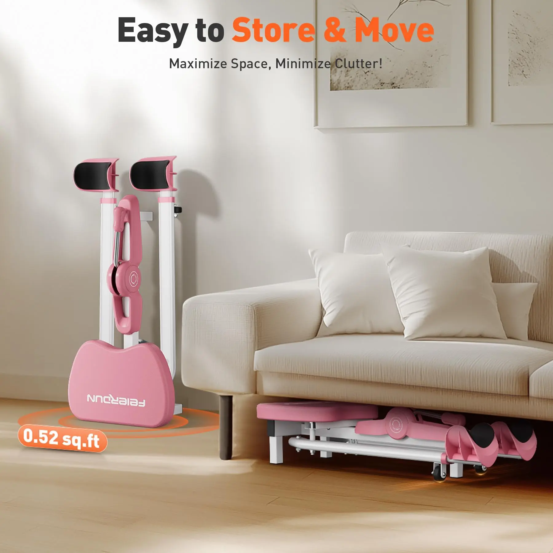 99% pre-assembled, the stretcher is quick to set up. Simply install the telescoping tube, and you're ready to start your stretching routine. It's space-saving with a compact footprint of just 0.52 sq. ft.