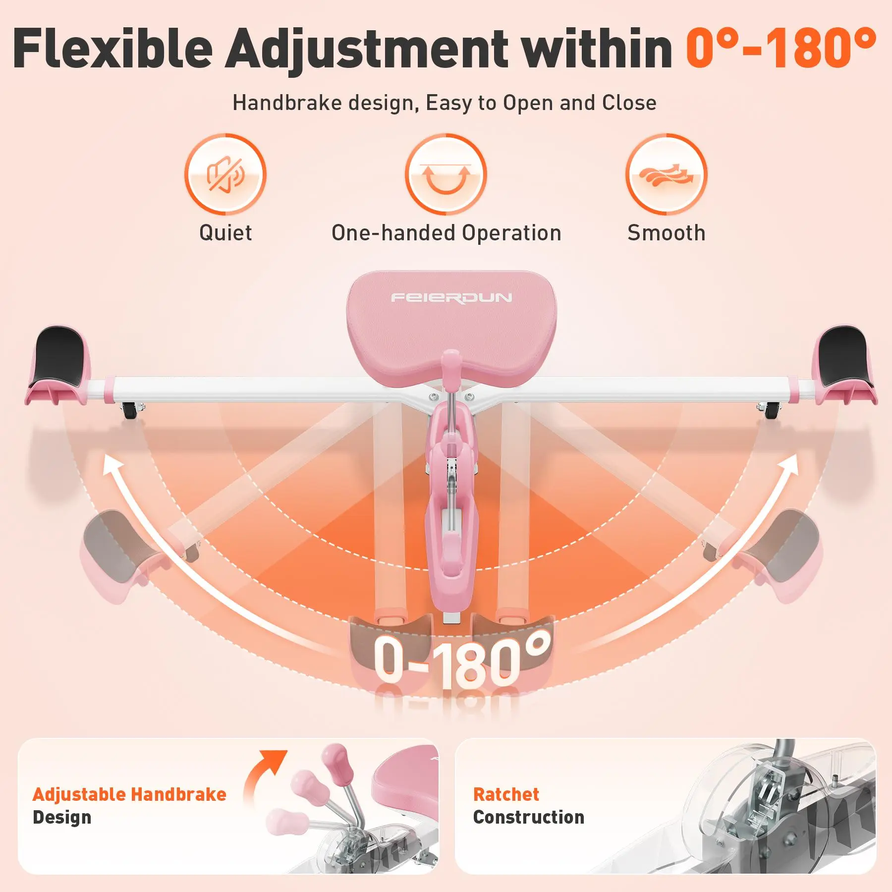 The internal gear system locks your stretch angle securely. Adjust your legs from 0° to 180° using a smooth lever mechanism. Accommodates various skill levels and stretching needs effortlessly.