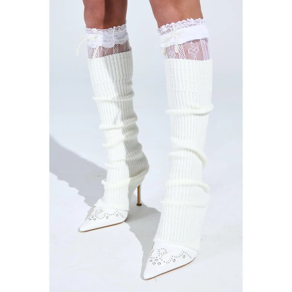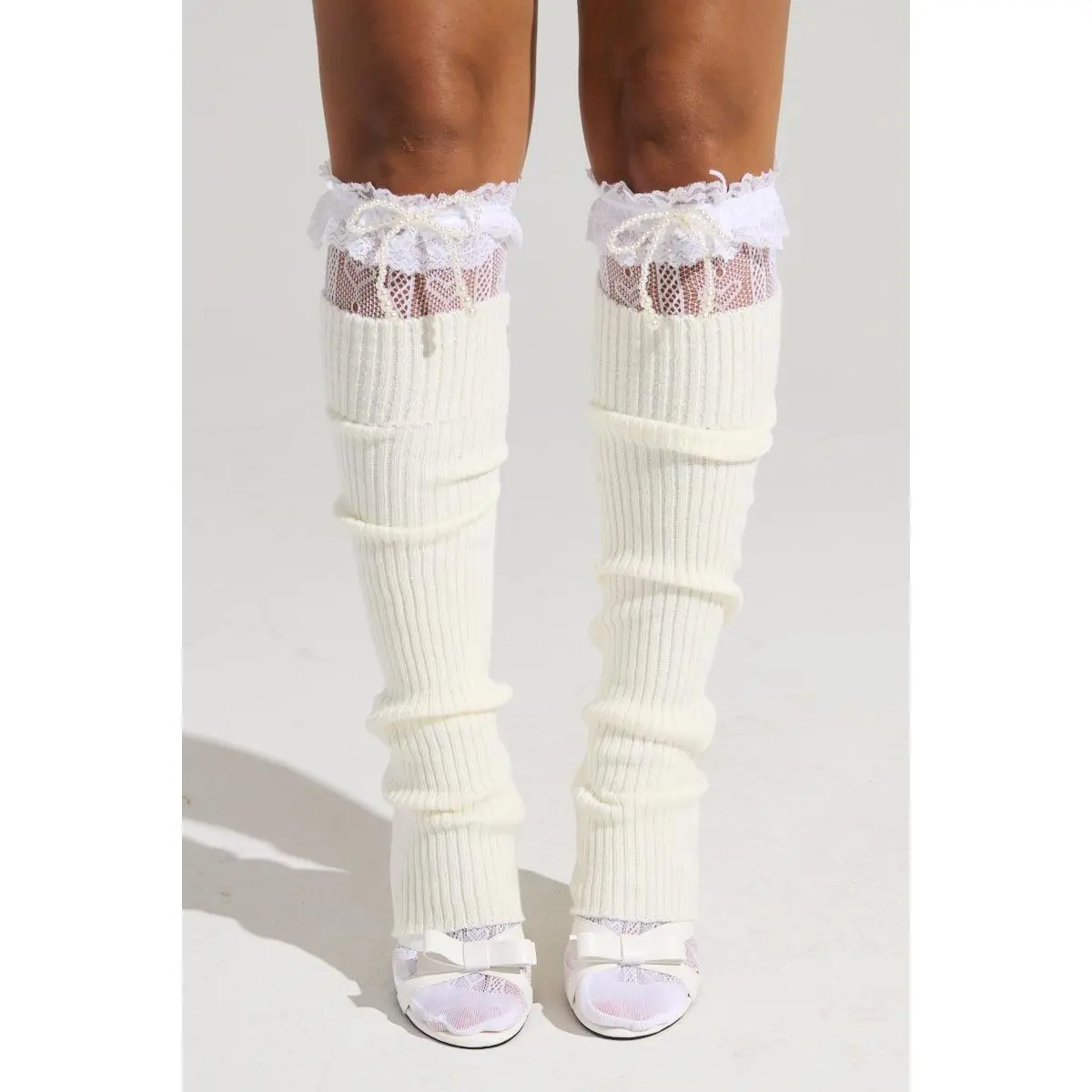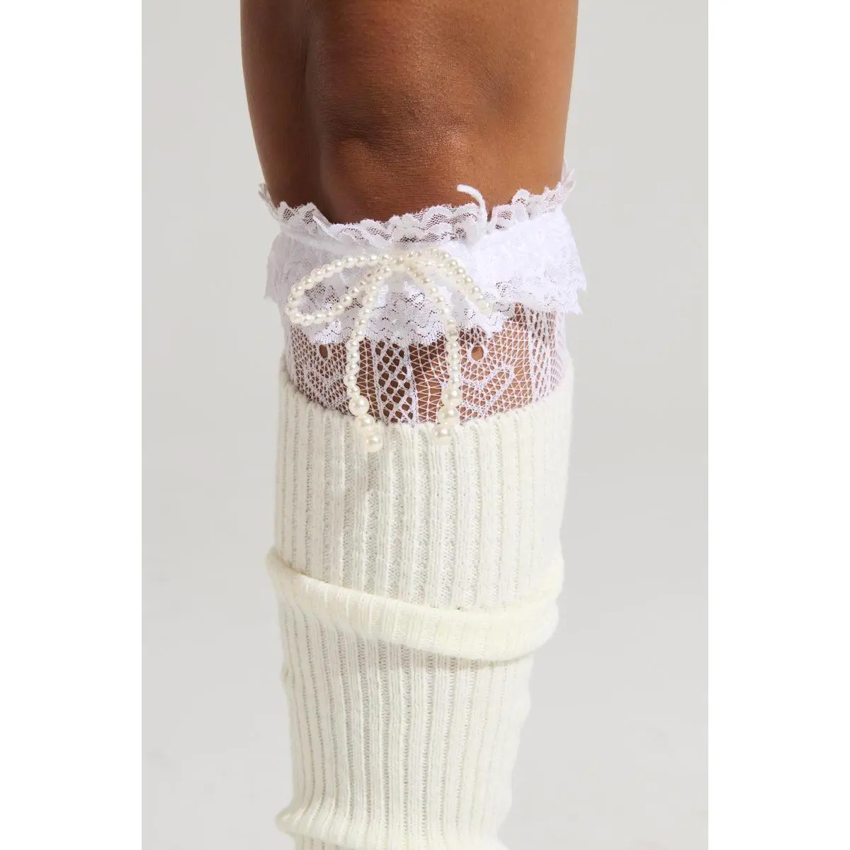 Balletcore, but make it opulent. The AKIRA Label Coco Stocking Leg Warmers are crafted from a soft and stretchy knit sweater fabrication and feature ribbed detailing throughout, pretty lace trim, and adorable bow attachments crafted from variously-sized pearl beads. Wear them with a fluttery skirt and strappy flats for a trendy, doll-like finish. - 100% Man-Made Materials- Stretchy- Imported(all measurements approximate from size O/S) - 22” LengthProduct ID: 434465
