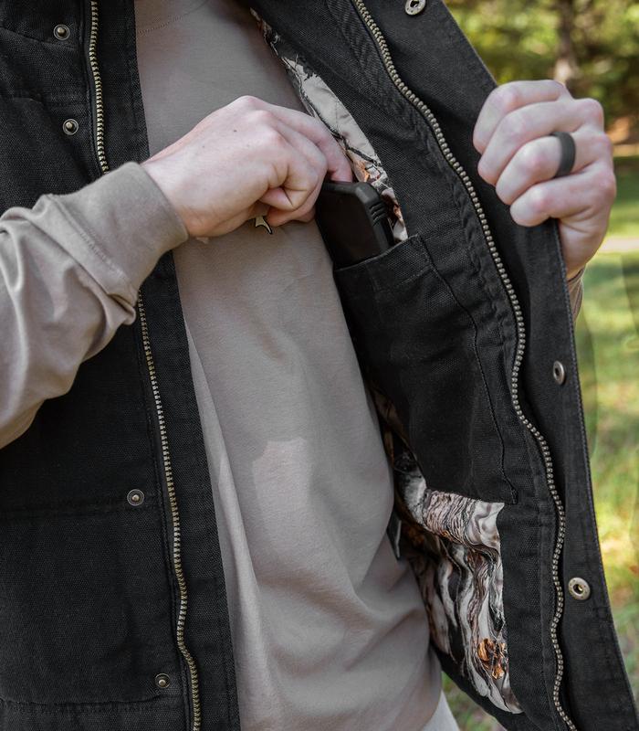 *Rugged canvas shell with warm insulation, double-needle channel quilting, and a durable water-repellent finish