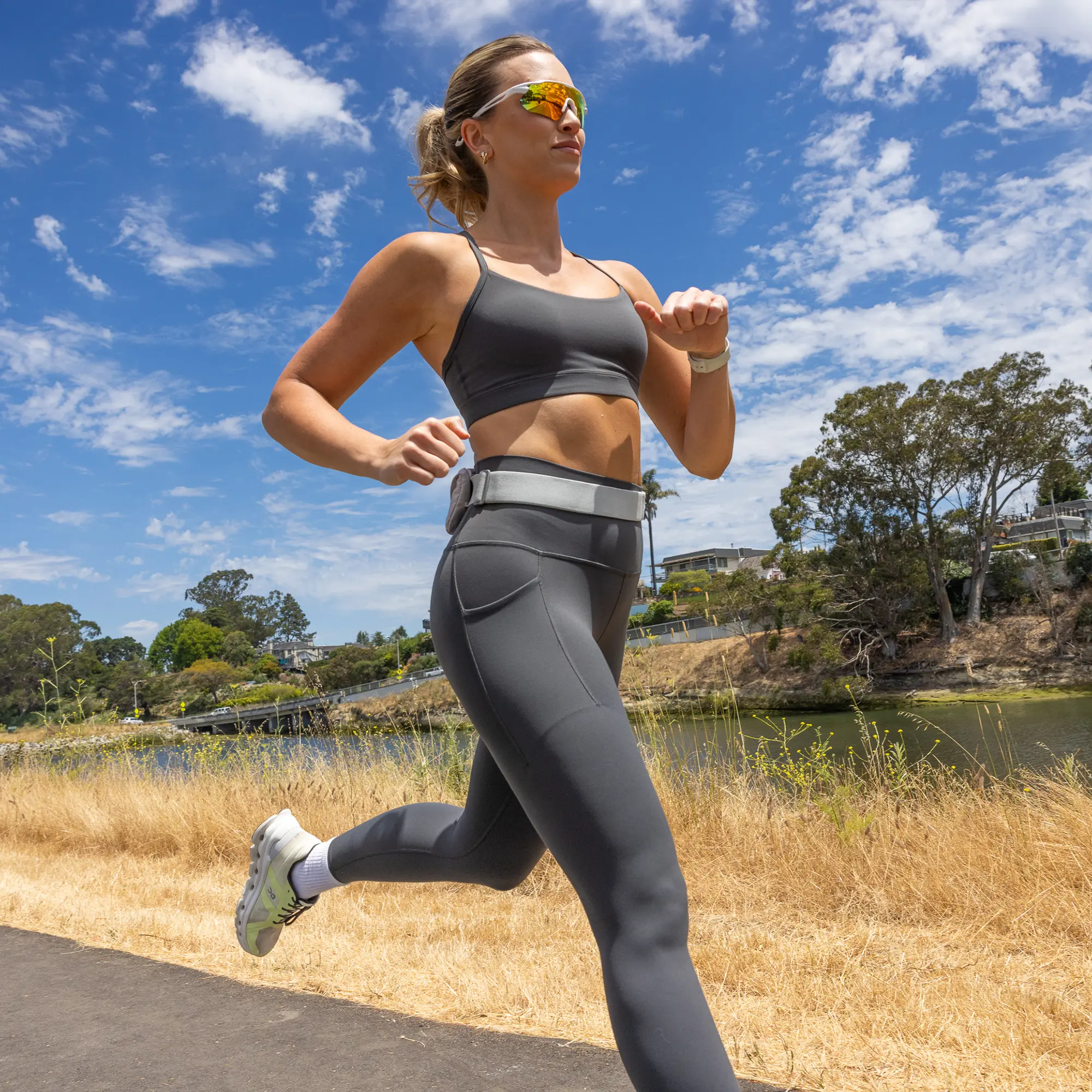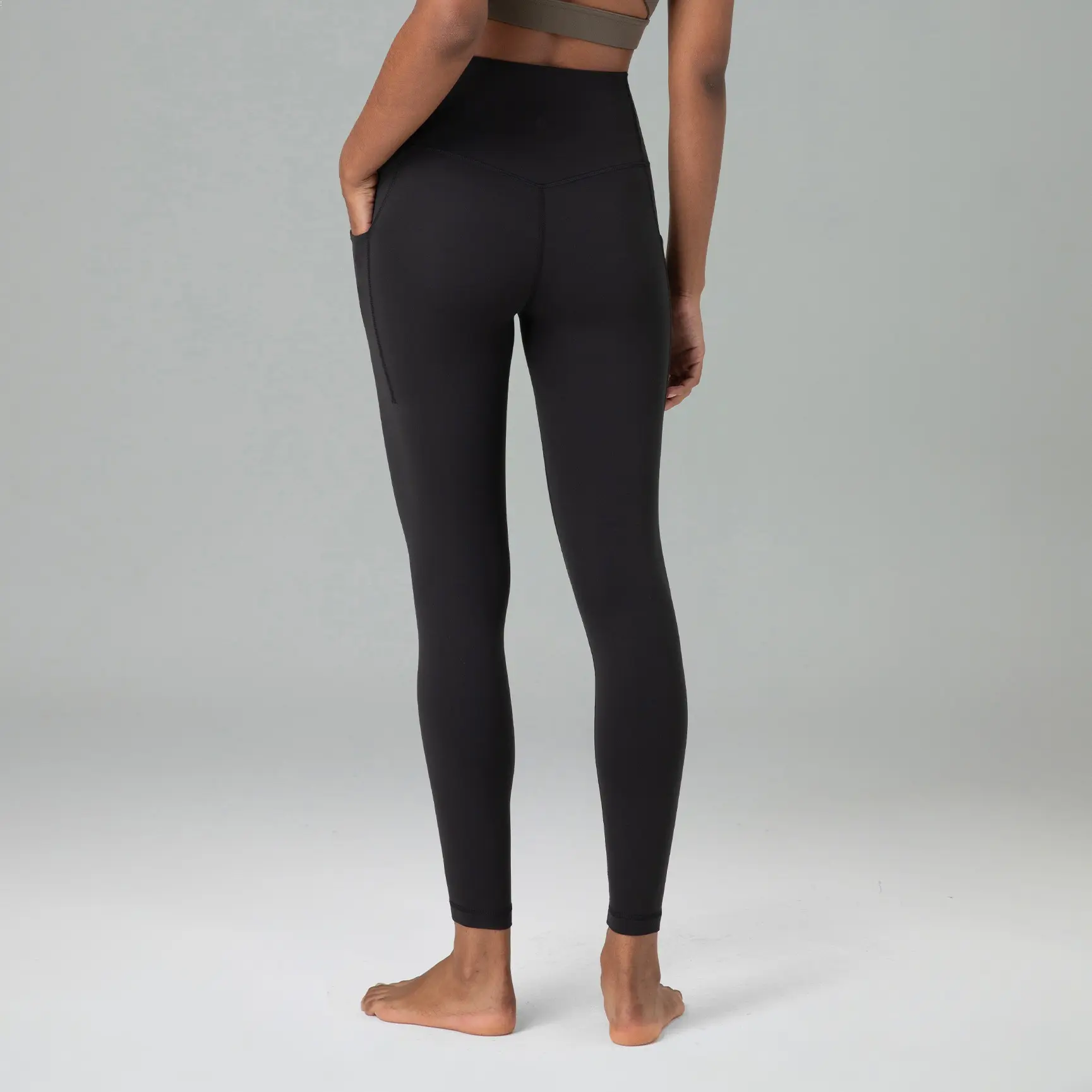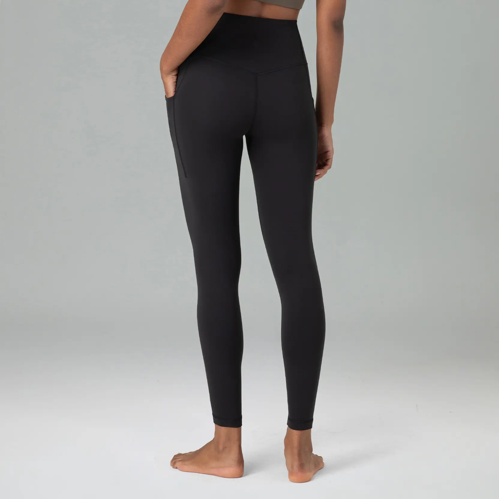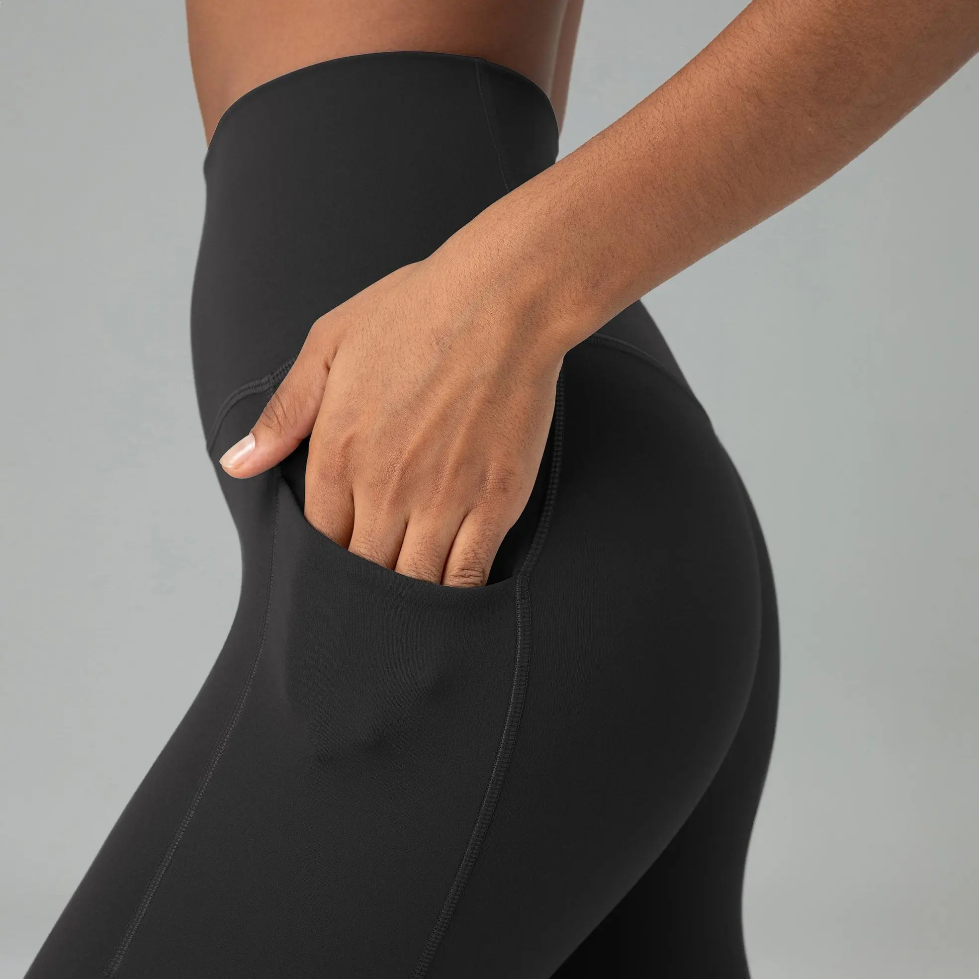 The feel of these too the touch, so nice! Perfect in length, super comfy, great tummy control, pockets, hands down this brand is my new favorite.