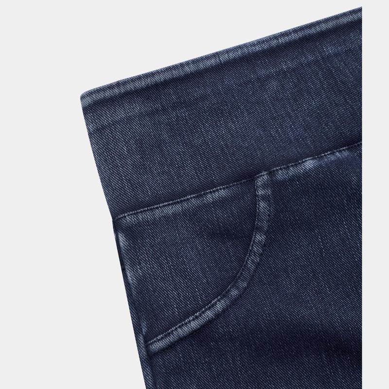 ·Features: The fabric is very similar to real denim in the way it looks but is just as comfortable as your favorite pair of leggings. These leggings are lighter in weight than jeans, so they take up less space and add less weight to your luggage. High waist designs that offer support & comfort, without sacrificing on style. Featuring two back side pockets for storing your essentials such as credit cards or other small items when you're on the go. There are no front side pockets. The fabric dries fast and is also stretchy compared to other denim fabrics. No zippers for a comfortable fit. Four-way stretch fabric offers ease of movement and durable wearability.