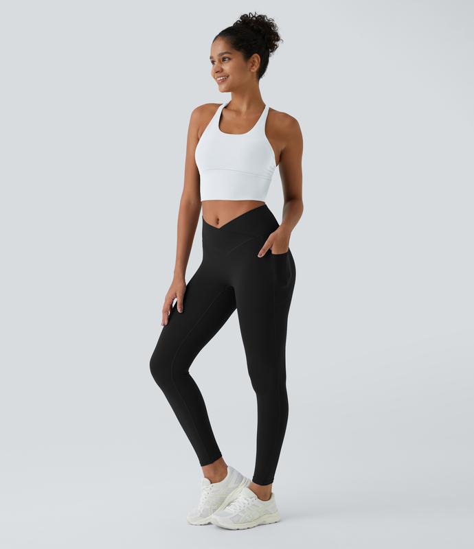 Perfect material. Bonus points for pockets. Crossover style doesn’t suit my shape and I will be returning. 5’4, 150lbs, ordered M. Maybe should have sized up but I don’t think that will solve the issue with my body shape. Great leggings!