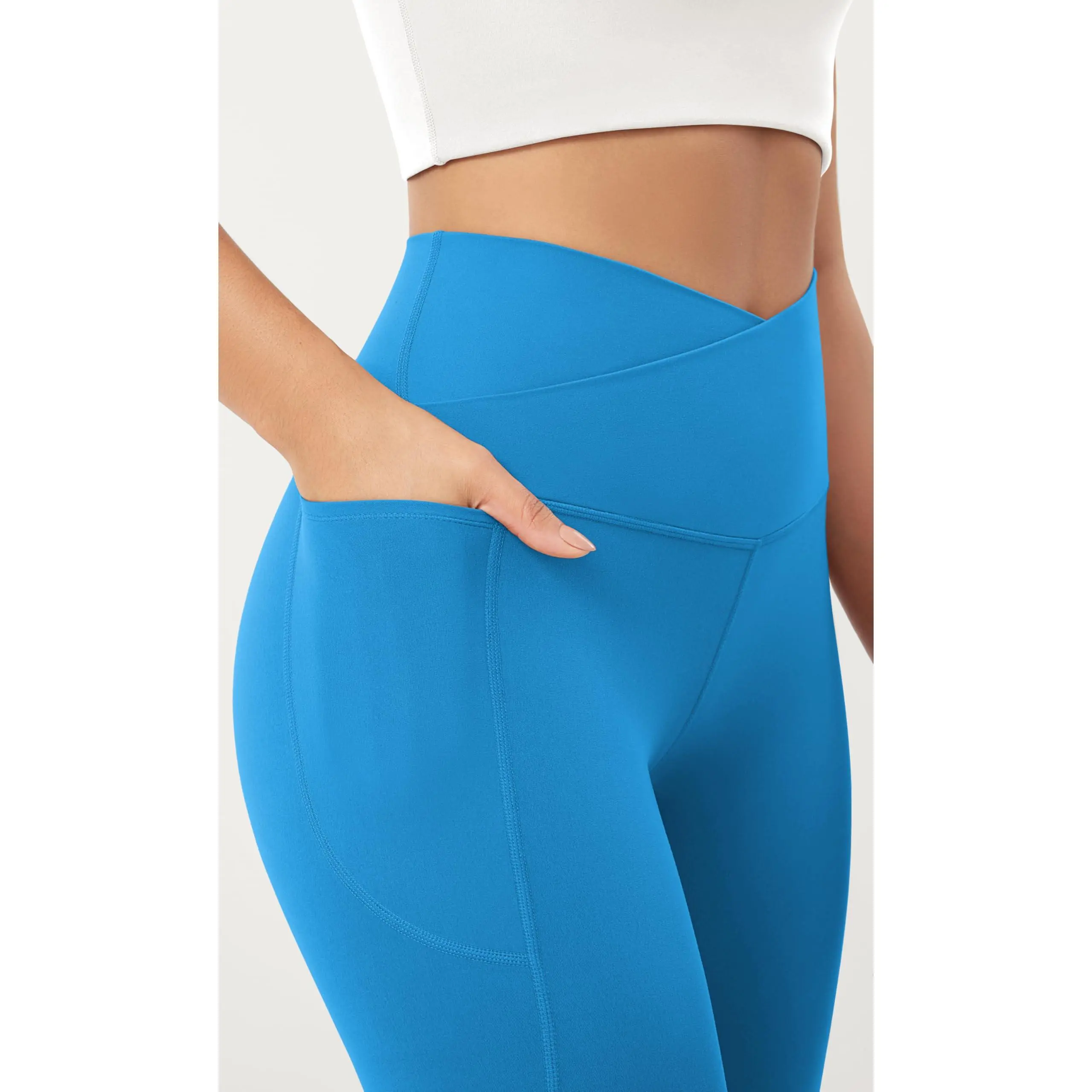·Chic Cross Waist: Stylish criss-cross waist with a high, wide waistband that stays in place without rolling down.