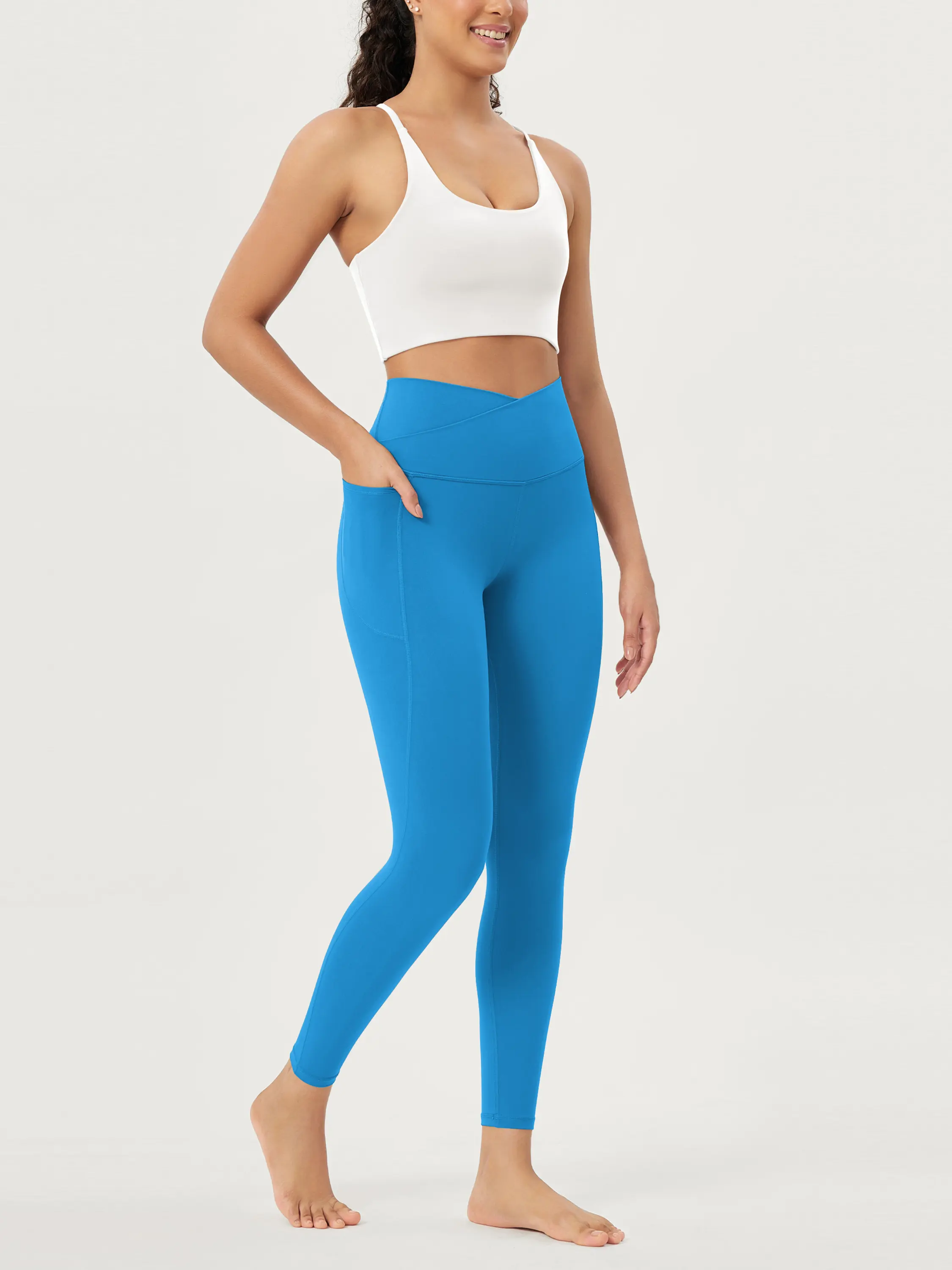 ODODOS Cloud Feeling Crossover 7/8 Leggings with Pockets for Women 25" / 28" V High Wasit Lounge Yoga Pants