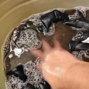 Straight out of the package the leggings smelled like burnt hair put them in the washing machine hung them to dry and then wore each pair of them I had bought three still smell like burnt hair made my hands black despite being washed . I can’t say the tummy control is awesome