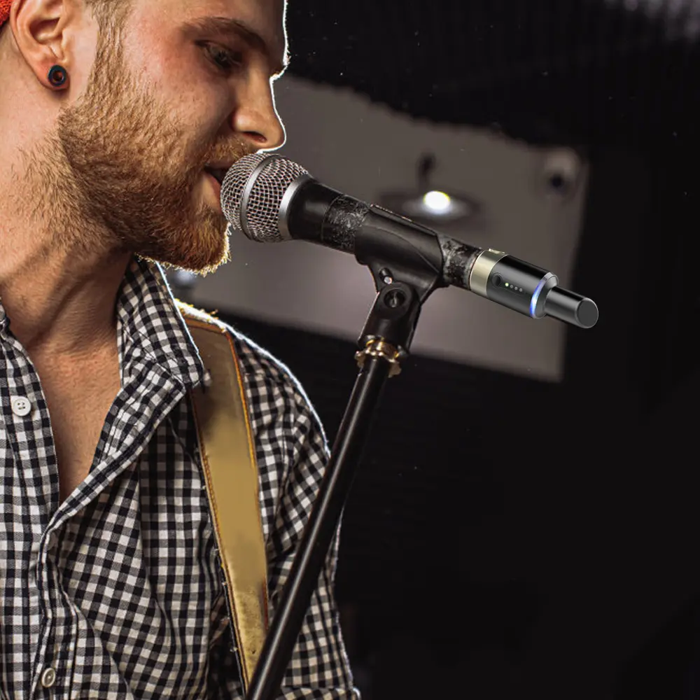 Transmitter and receiver system utilize the 5.8GHz ISM frequency band, free from interference Designed for any dynamic/harmonic mic, no need the cable Up to 100ft of wireless range (Not work with condenser mic)
