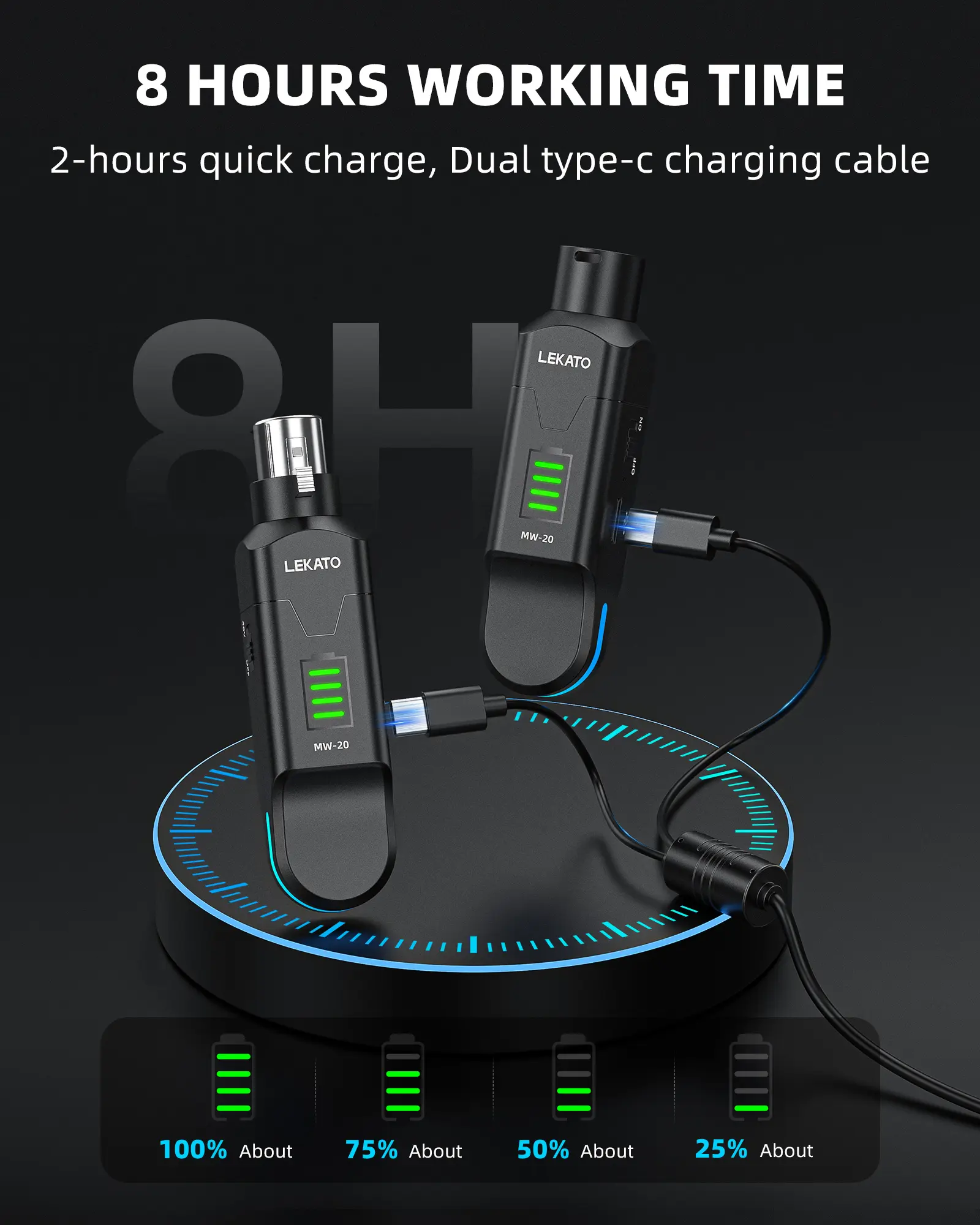 ·8H Working Time: Built-in rechargeable battery, support 2-hour quick charge, and use for 8 hours after fully charged. Real-time power monitoring, never worried about running out of battery unexpectly during your performance!