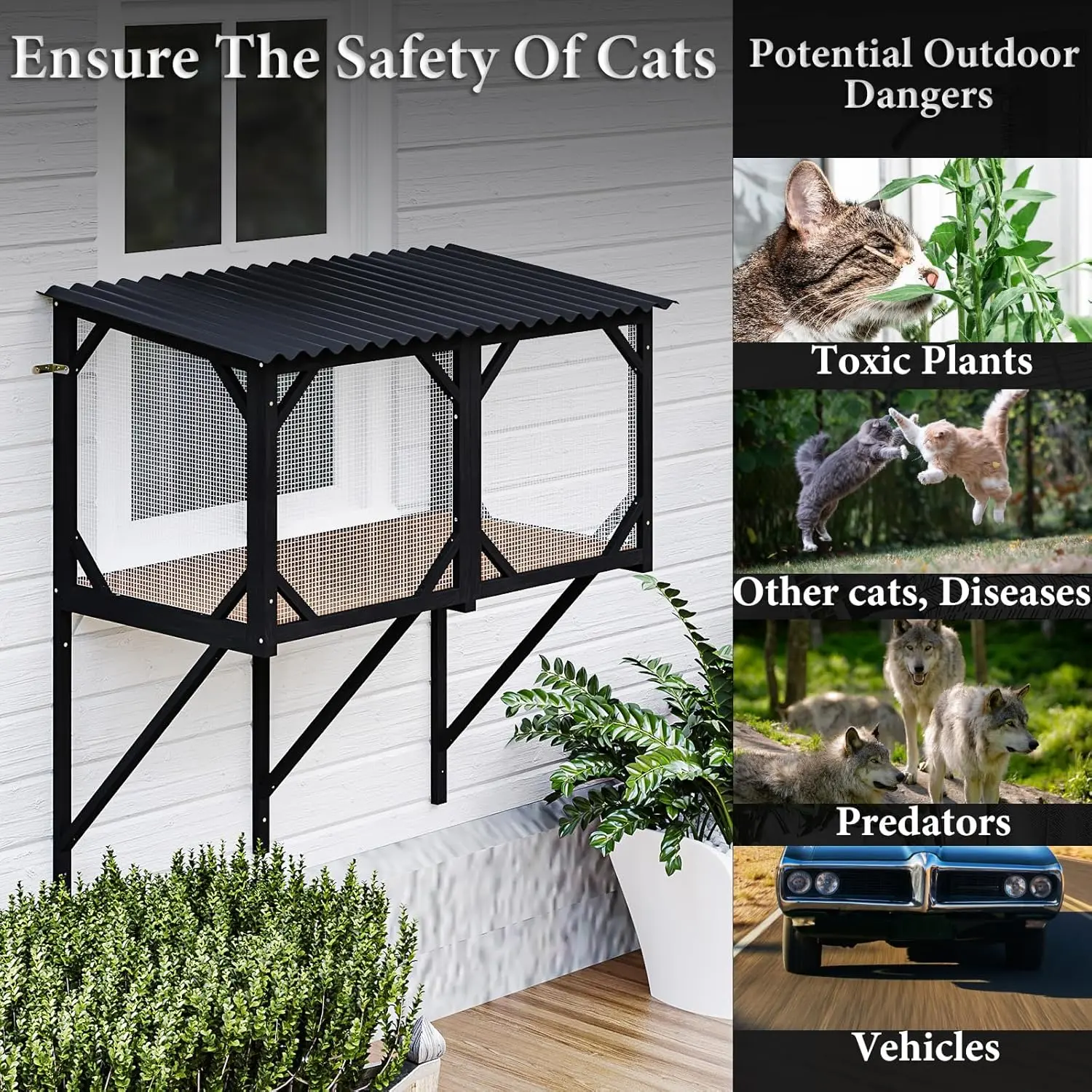 ·Secure Window Installation: Designed specifically for window, this window catio attaches directly to your window exterior. Its robust structure prevents escapes and falls, providing a safe outdoor space while shielding your cat from external dangers.