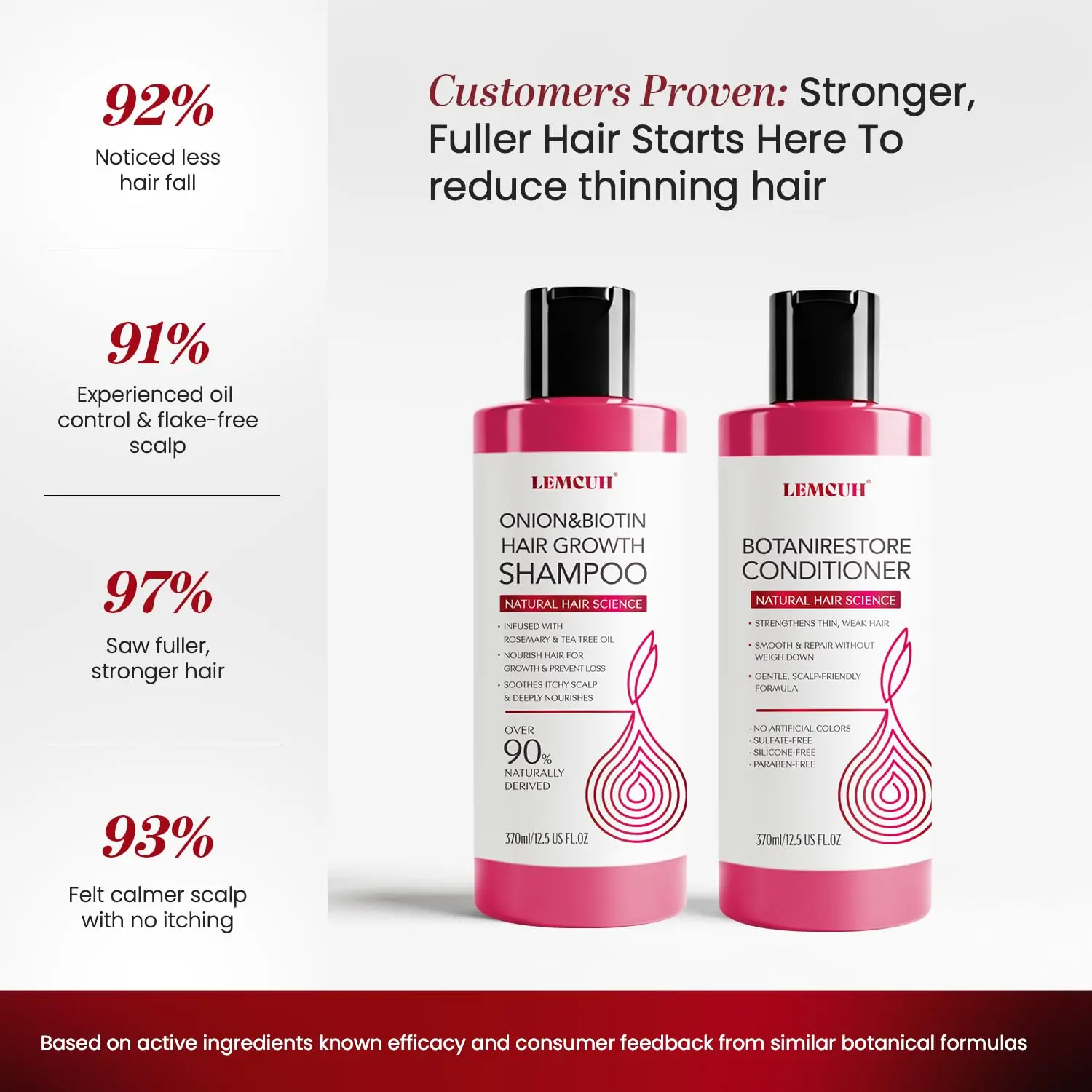 ·Multi-Botanical Ingredient System: Formulated with a carefully selected blend of biotin, onion extract, rosemary, ginger, tea tree oil, ginseng, caffeine, and traditional botanical extracts such as He Shou Wu and Angelica root. Each ingredient is included to support scalp vitality, micro-circulation, and comfort, working together as a botanical system rather than relying on a single active ingredient.