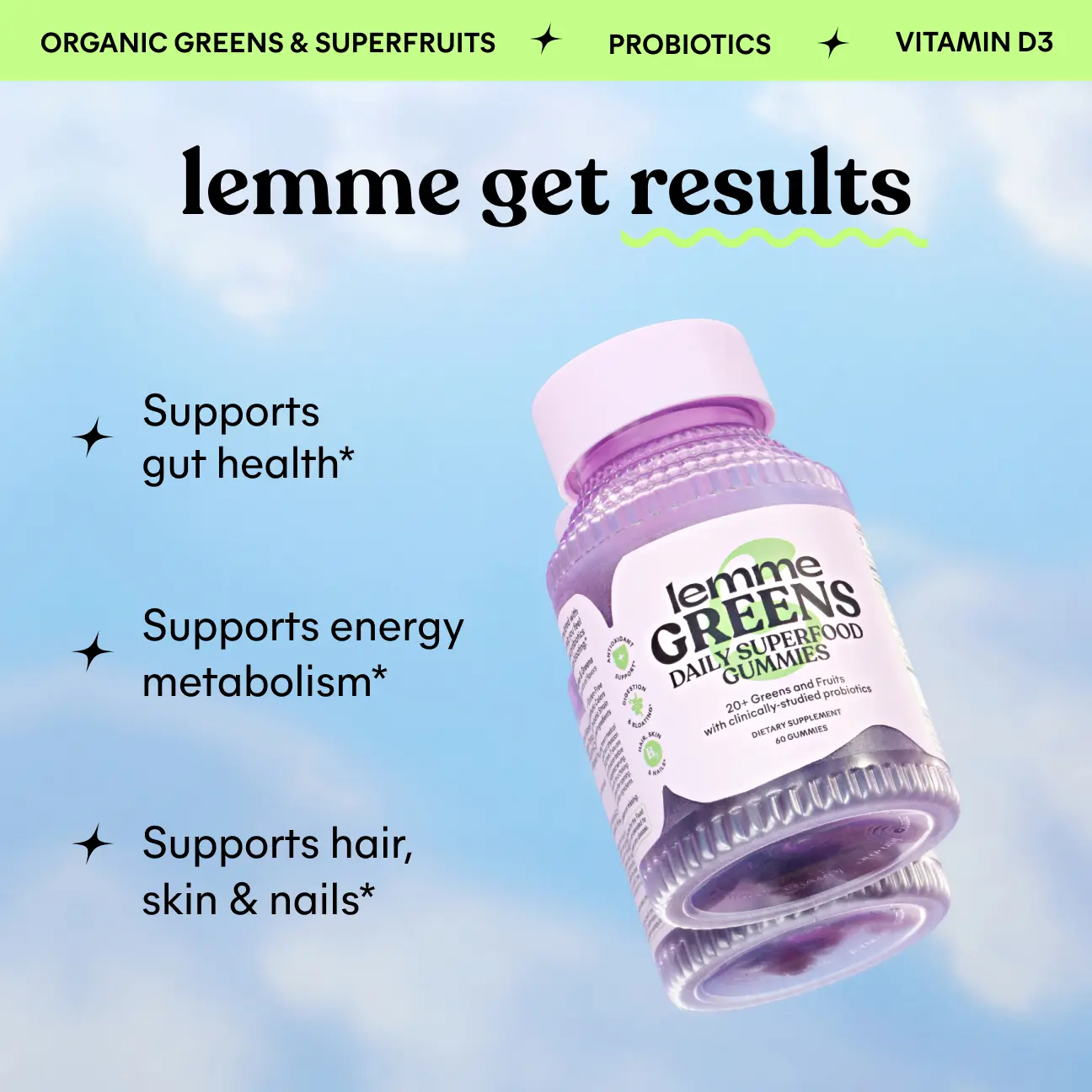 Hold up … these aren’t your grandma’s chewy vitamins! 🎉 Lemme Greens has made health taste GOOD! These gummies are a delightful treat, not the chalky vitamins of the past.