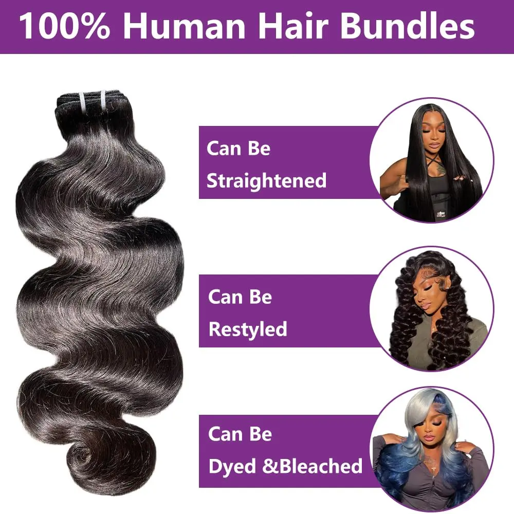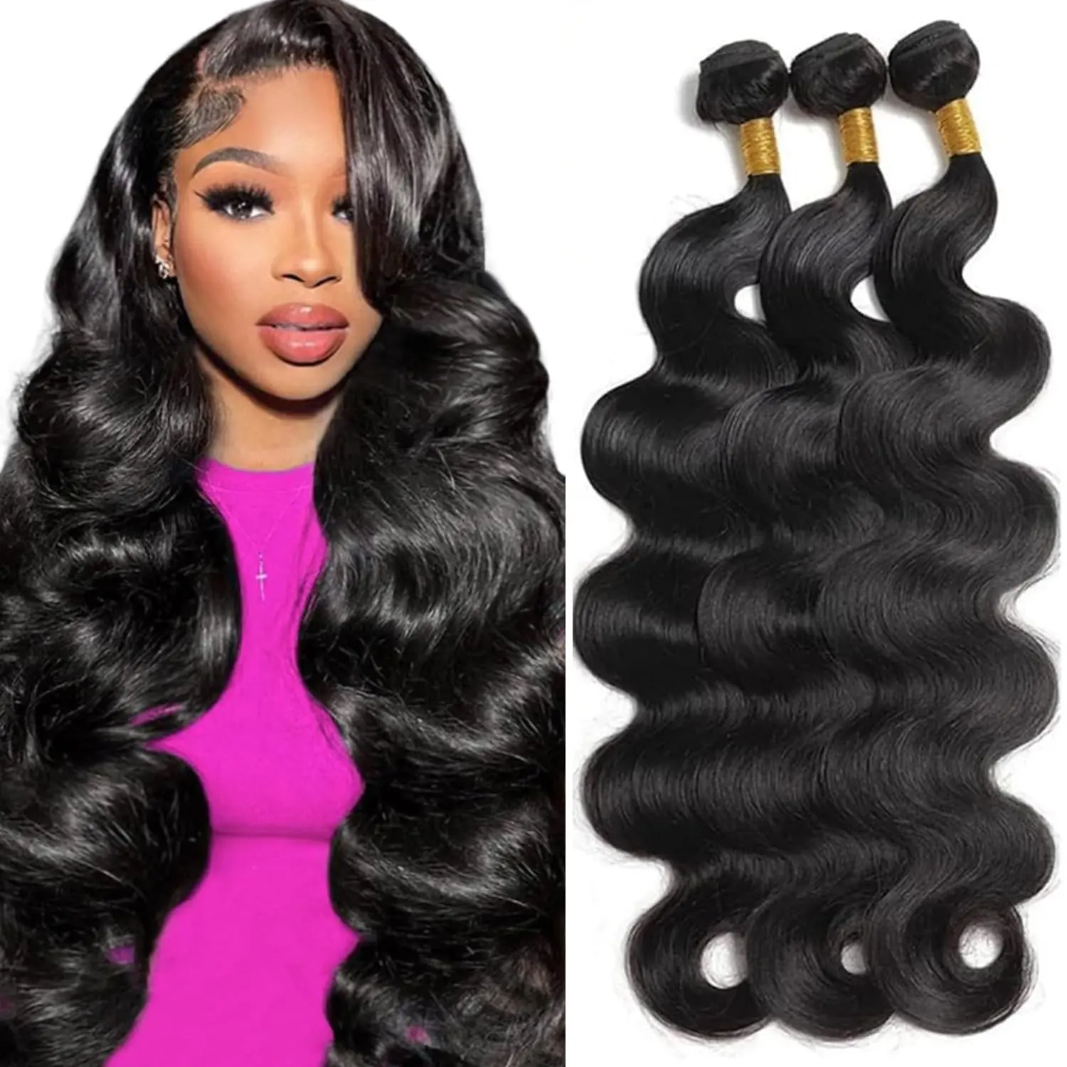 Lemoda 12A Body Wave Virgin Human Hair Bundles Body Wave Unprocessed Raw Human Hair Extensions Thick Ends Hair Weave Bundles Natural Black