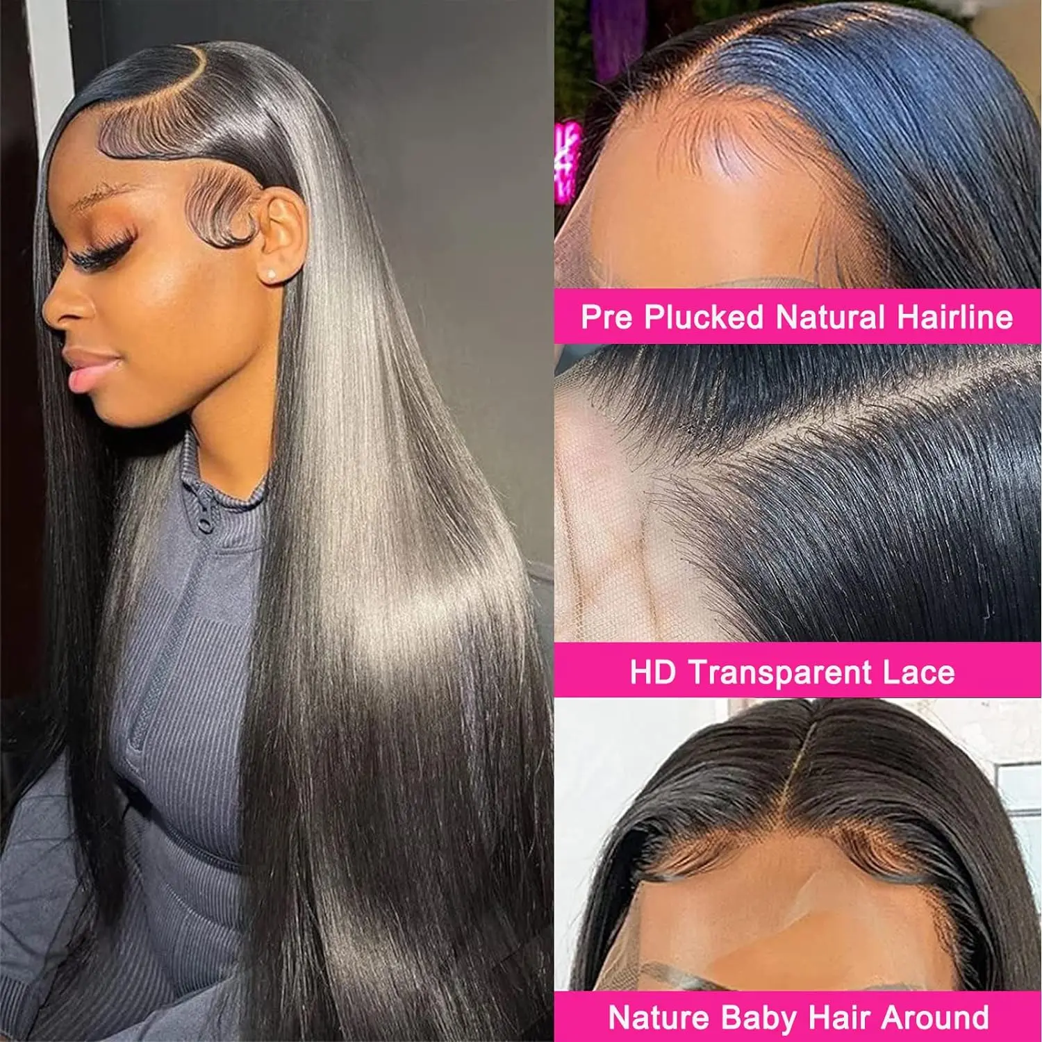 ·【HD Transparent Lace】:13x6 hd transparent lace front human hair wigs ,swiss lace technology, pre plucked natural hairline with baby hair around.HD transparent lace, soft and breathable,invisible and natural,suitable for all skin colors.